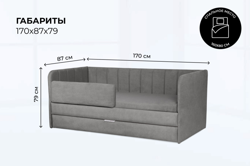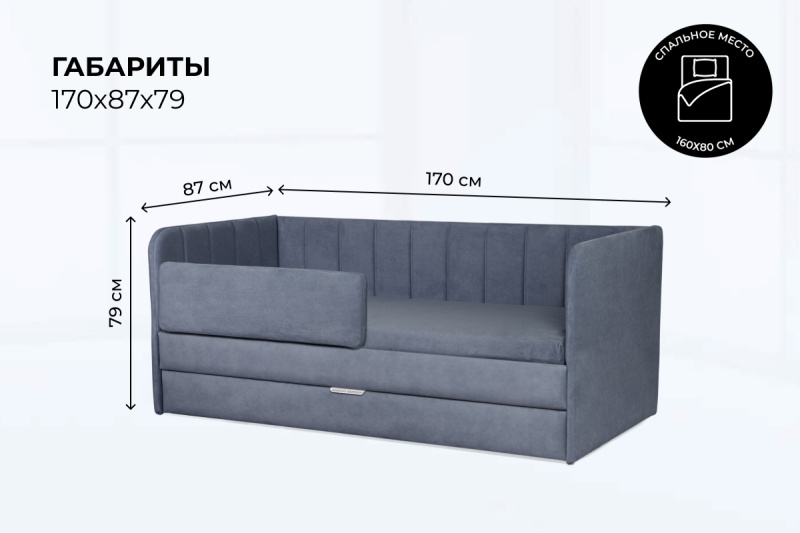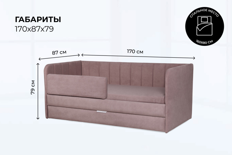 Размер спального места 160*80 см – у вас не возникнет сложностей с подбором матраса. А ребенок сможет спать на кровати от 2 до 14-16 лет! Ему будет достаточно простора.