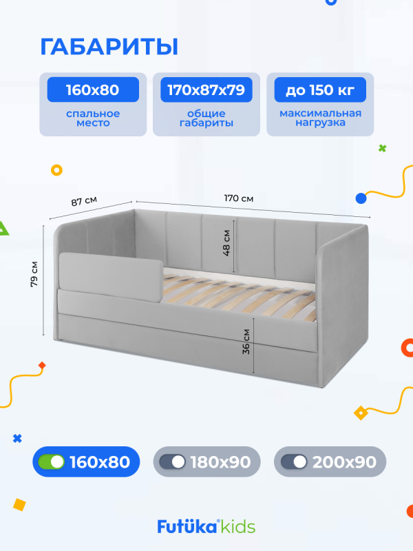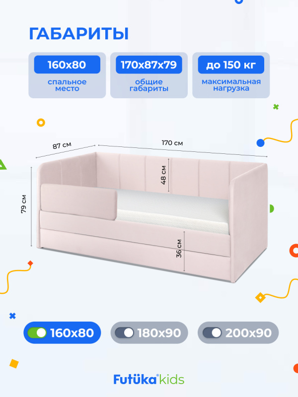 Представляем вашему вниманию детскую кровать STITCH от Futuka kids в размерностях: 80x160, 90x180 и 90x200, созданную с учетом всех потребностей вашего ребенка. Эта кроватка идеально подойдет для организации комфортного и безопасного сна. Модель выполнена в стильном и современном дизайне, что станет отличным дополнением к интерьеру детской комнаты.
