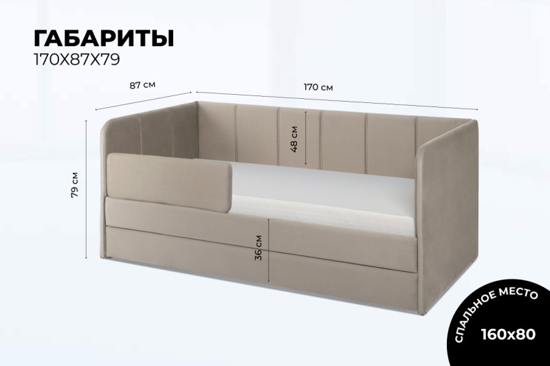Мягкая кровать в современном стиле украсит интерьер любой детской комнаты, подходит как для мальчиков, так и для девочек.