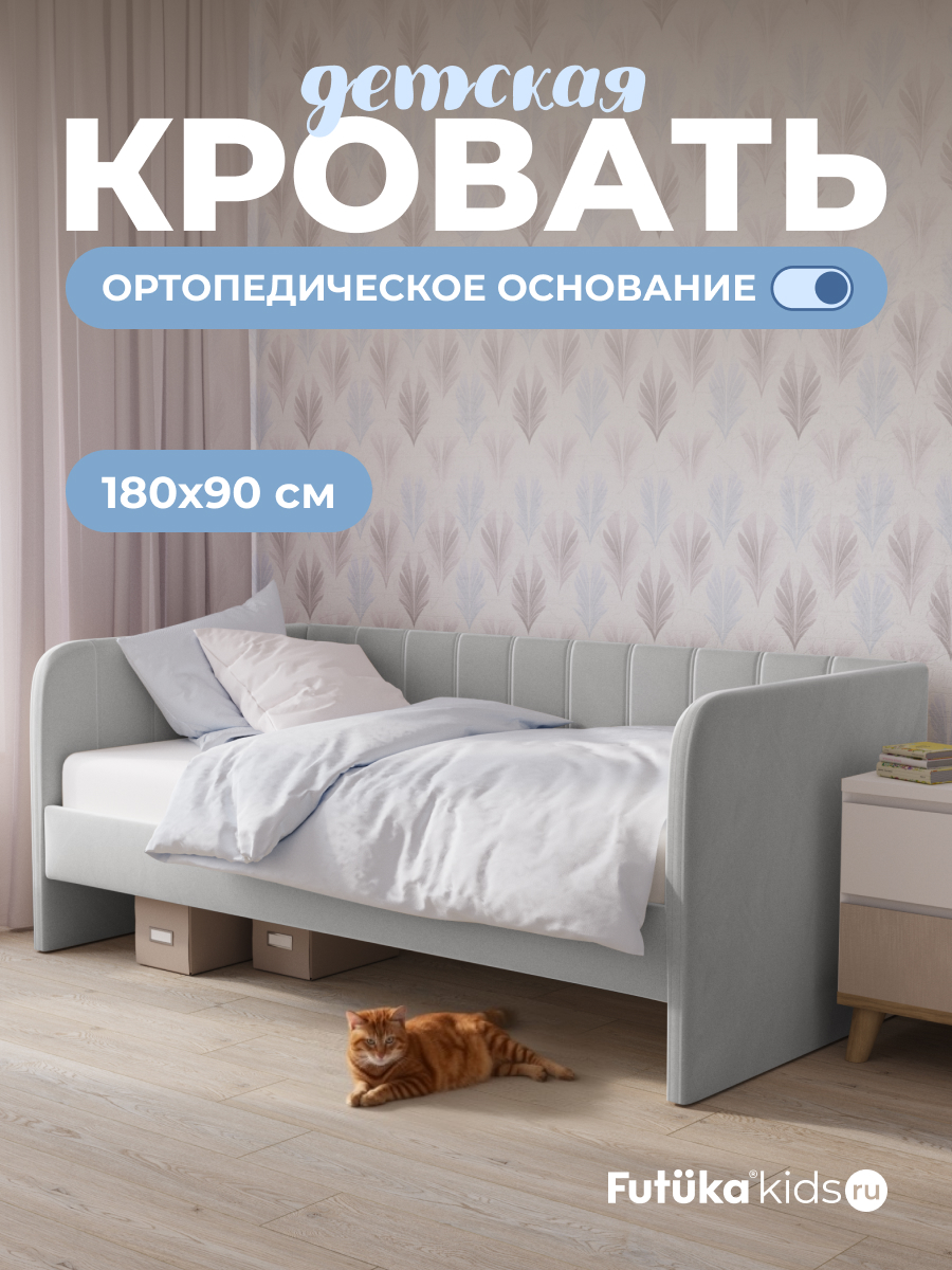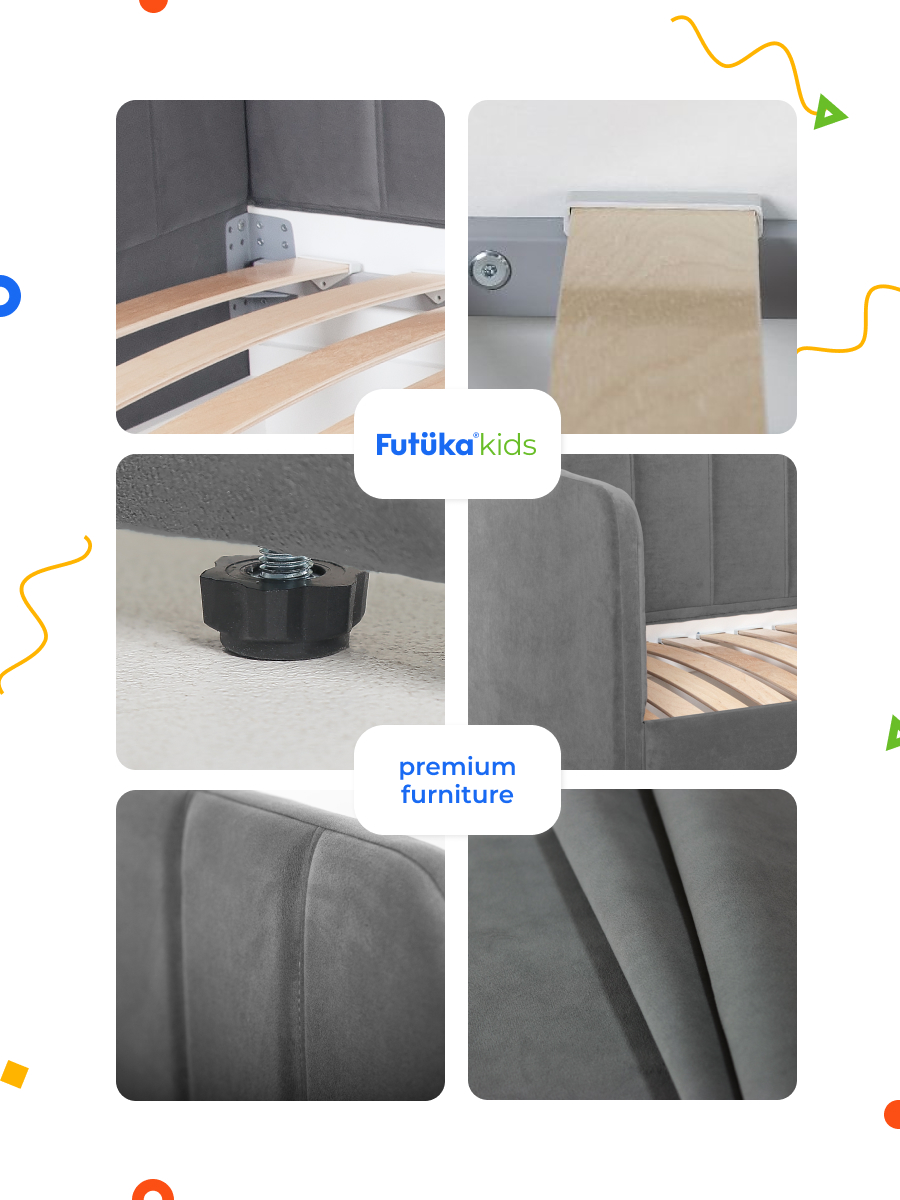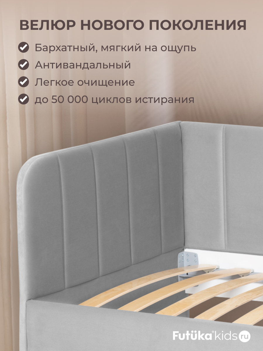 Мягкая кровать в современном стиле украсит интерьер любой детской комнаты, подходит как для мальчиков, так и для девочек.