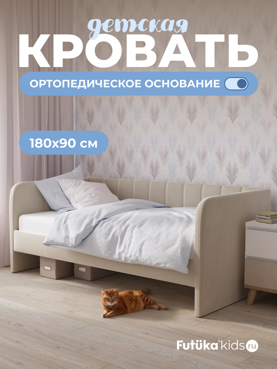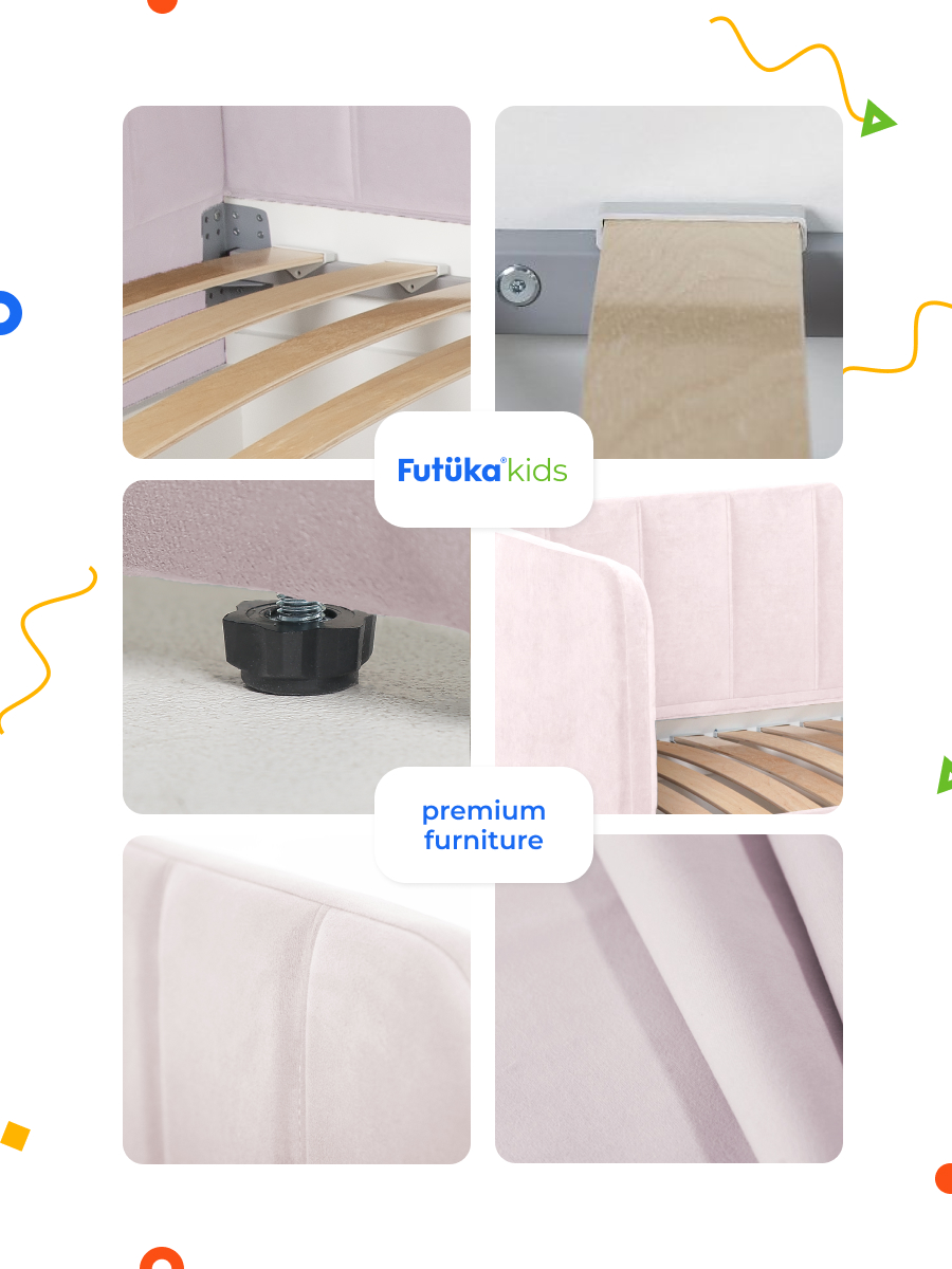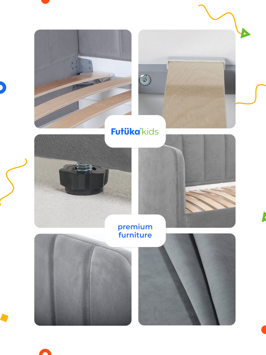 Мягкая кровать в современном стиле украсит интерьер любой детской комнаты, подходит как для мальчиков, так и для девочек.