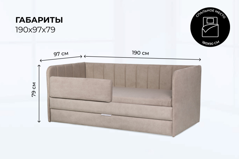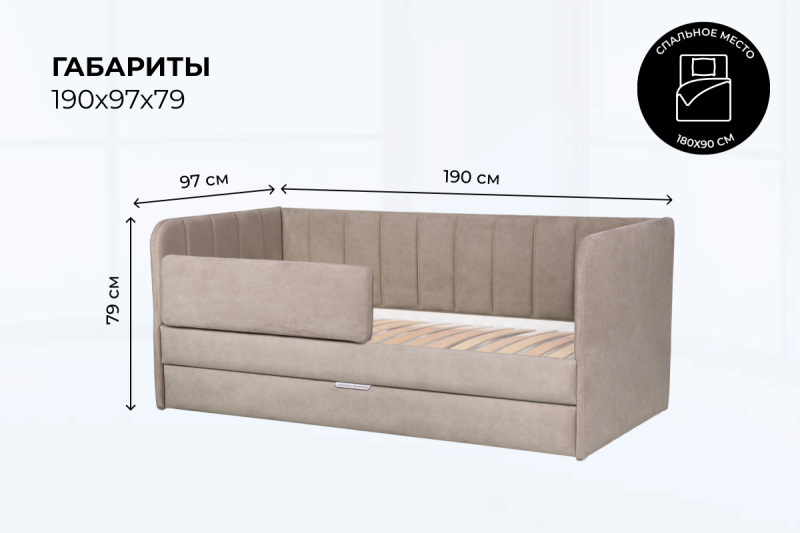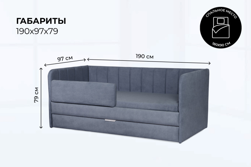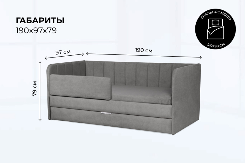 Размер спального места 180*90 см – у вас не возникнет сложностей с подбором матраса. А ребенок сможет спать на кровати от 2 до 14-16 лет! Ему будет достаточно простора.