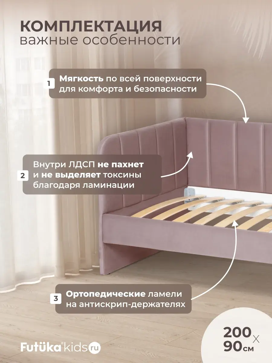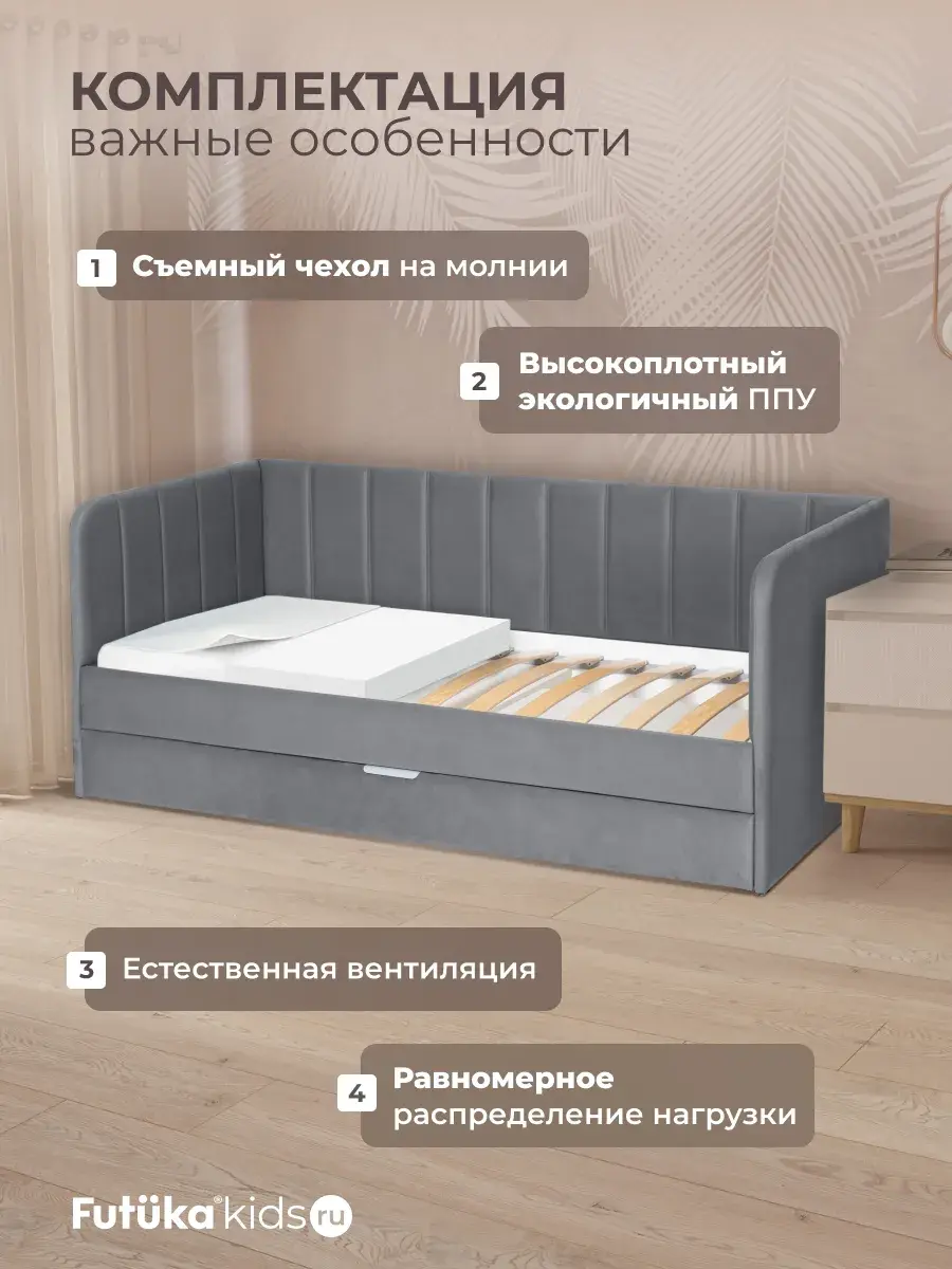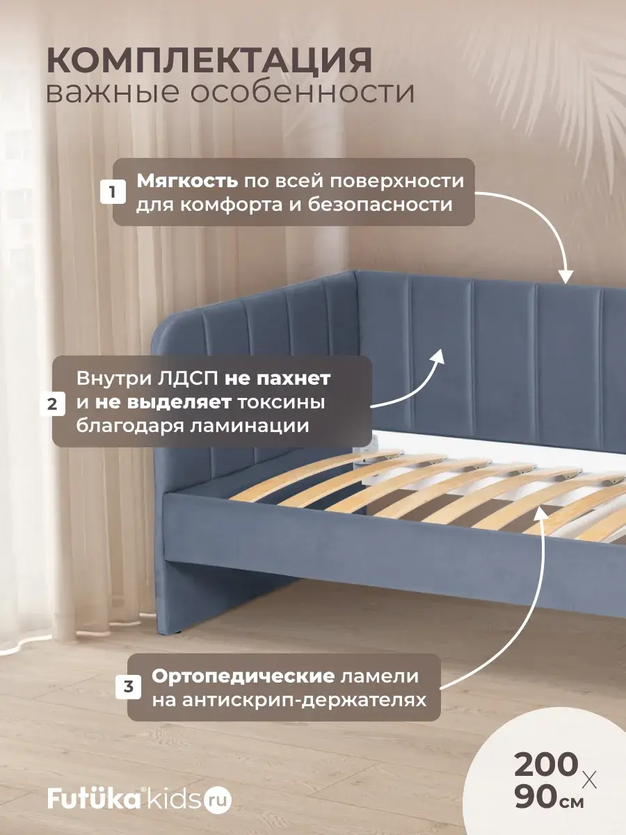 Мягкая кровать в современном стиле украсит интерьер любой детской комнаты, подходит как для мальчиков, так и для девочек.