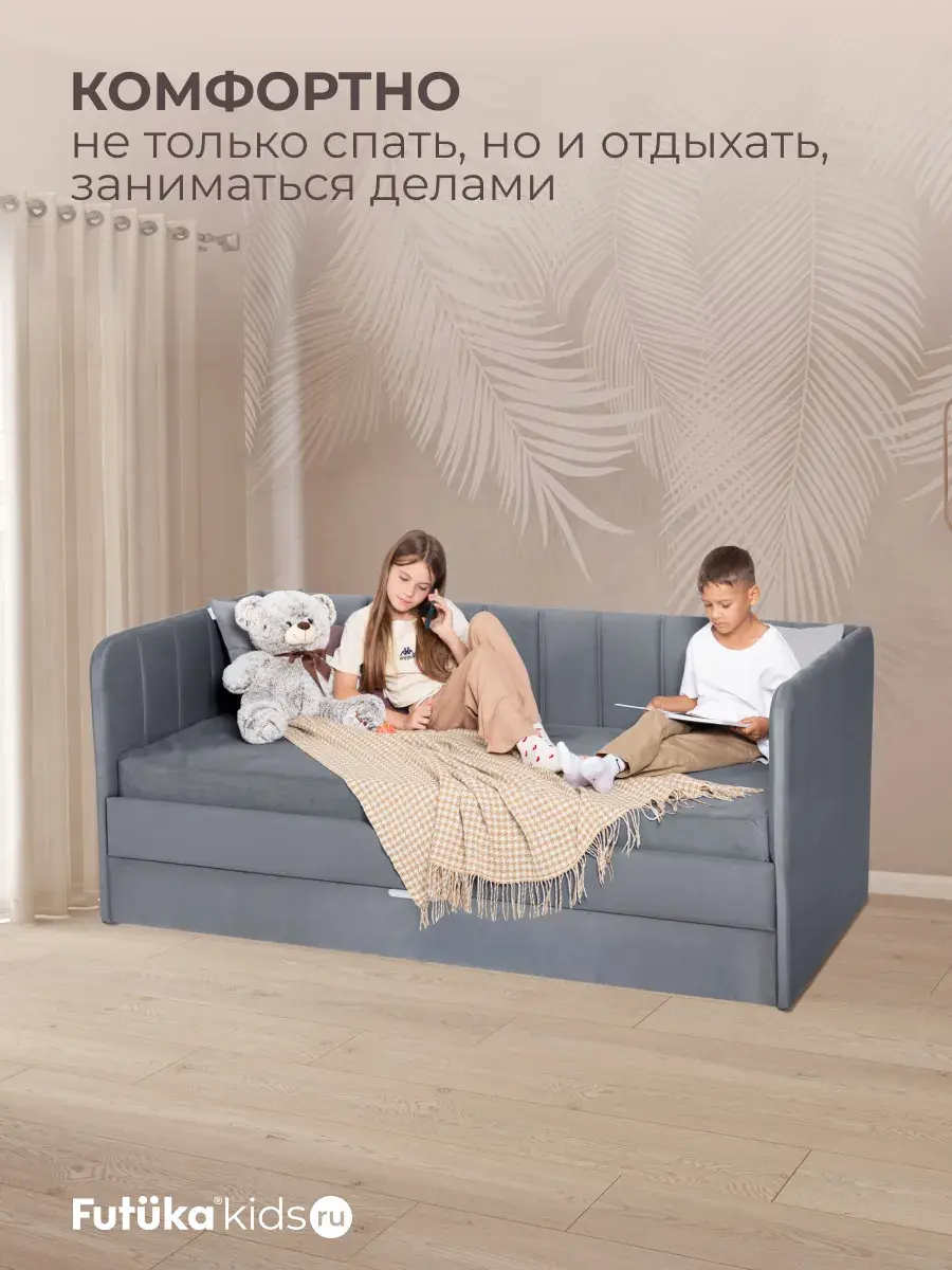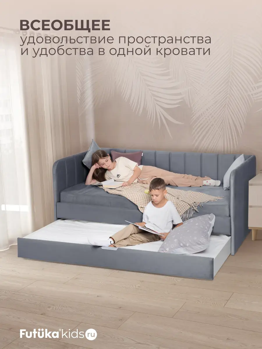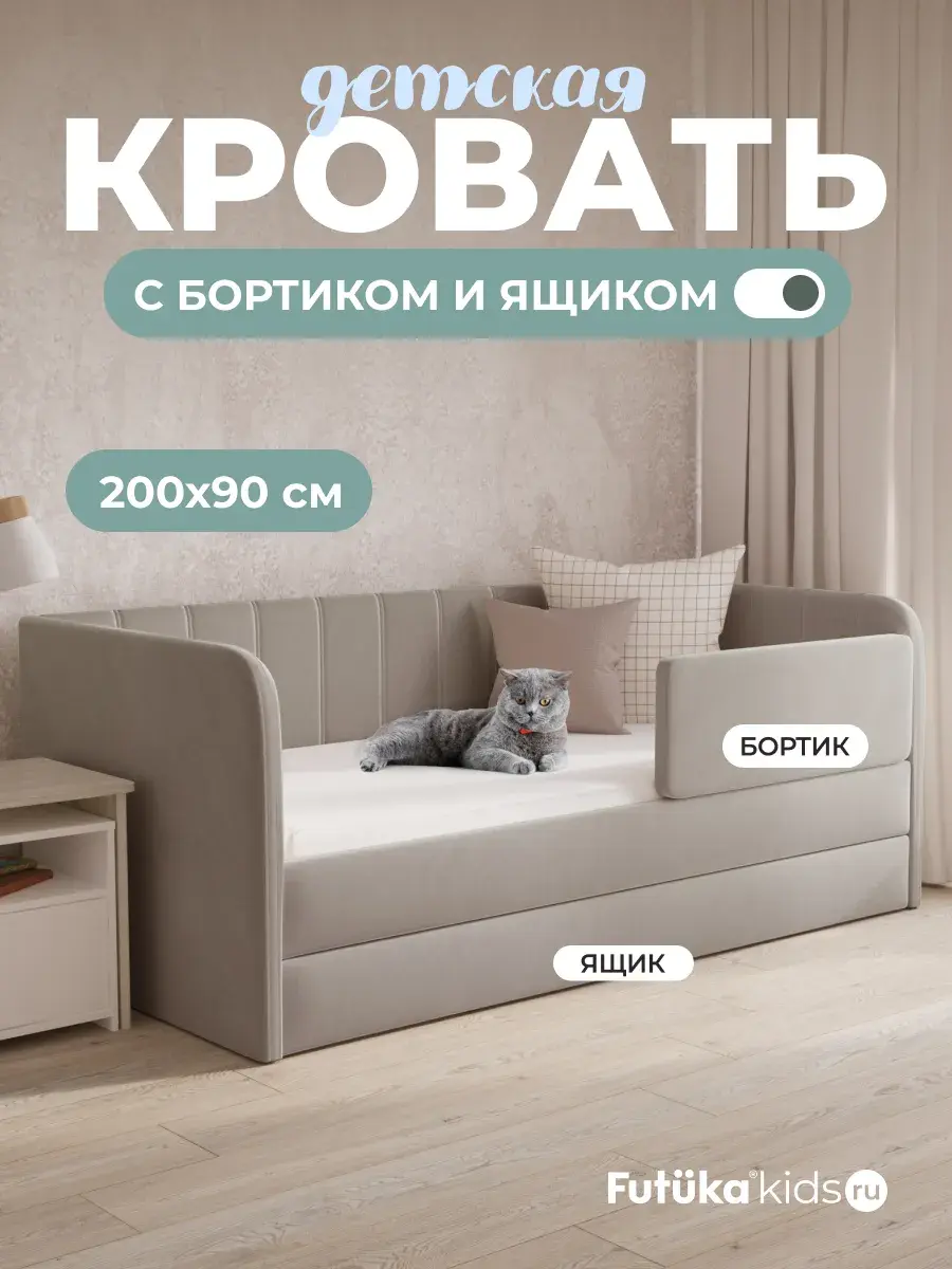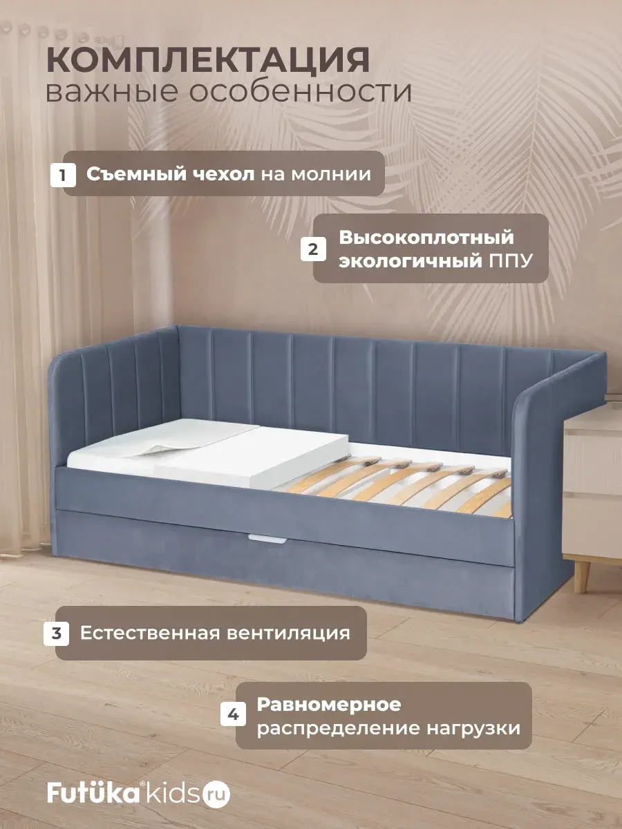 Мягкая кровать в современном стиле украсит интерьер любой детской комнаты, подходит как для мальчиков, так и для девочек.