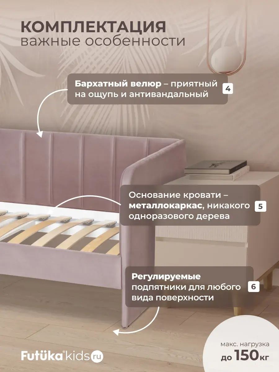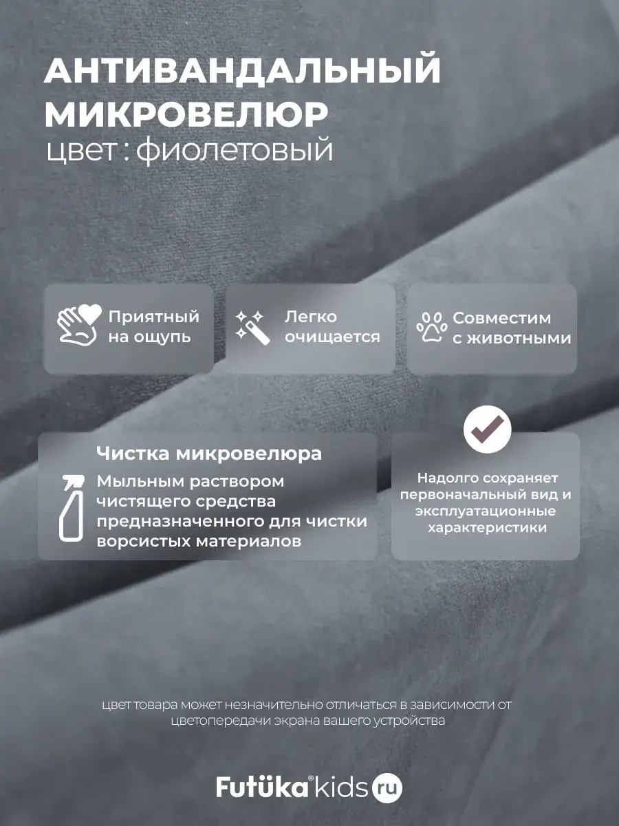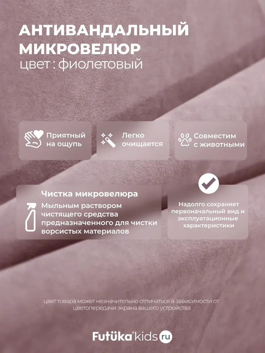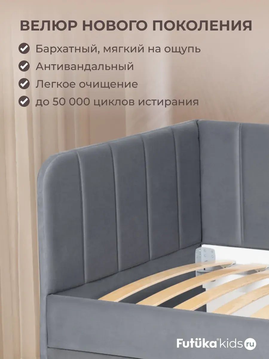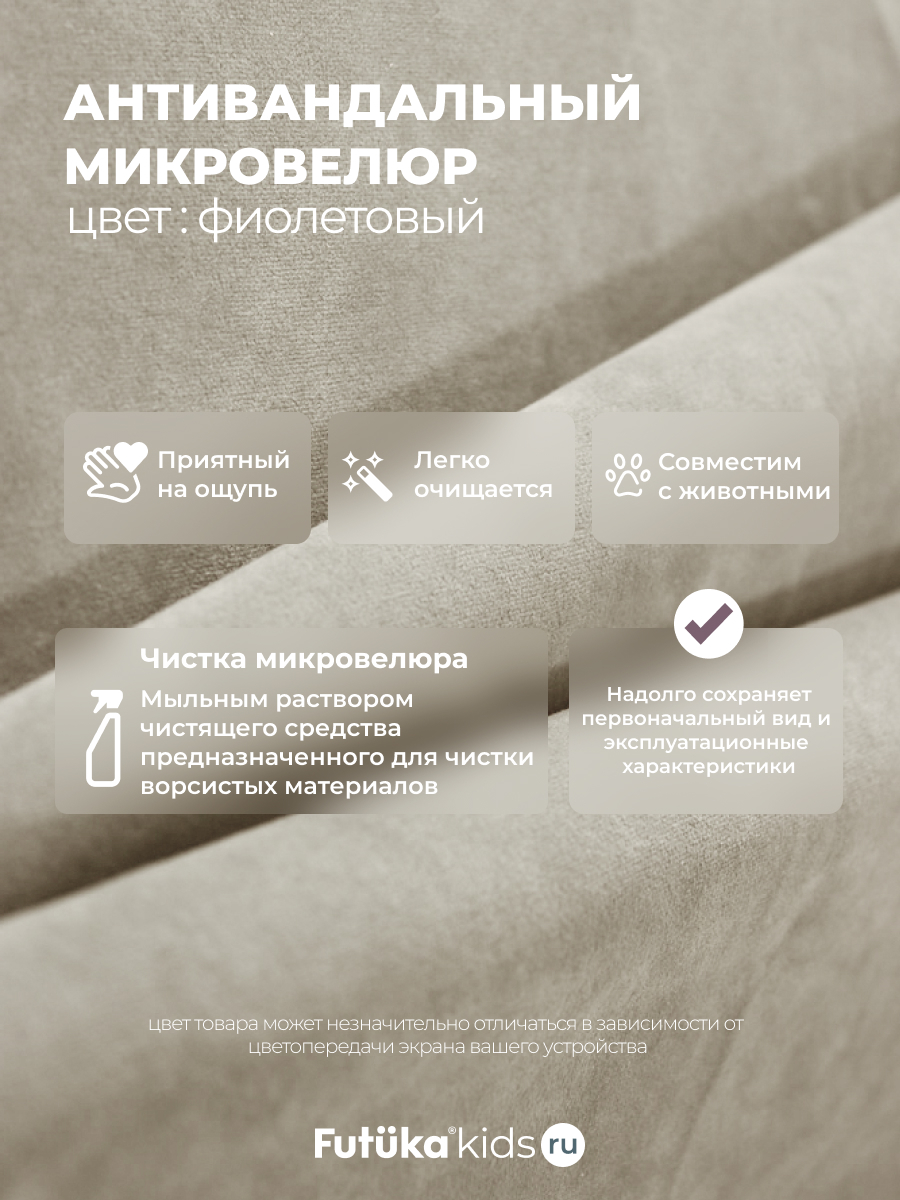 Мягкая обивка создает атмосферу уюта. При создании новинки мы использовали ткань велюр последнего поколения, отличающуюся такими свойствами как: ультра мягкость; повышенная износостойкость, за счет инновационных методов производства; легкая чистка.