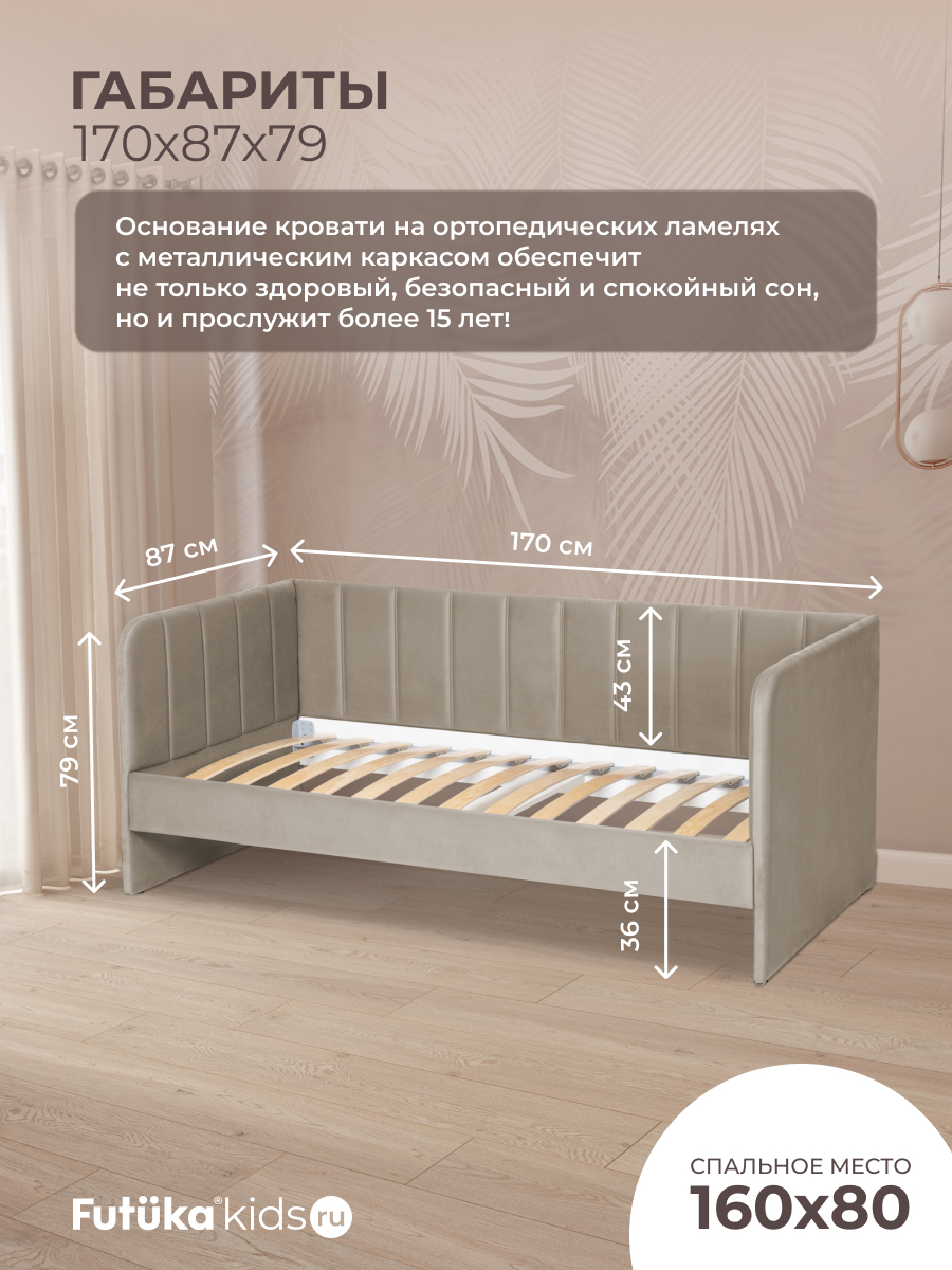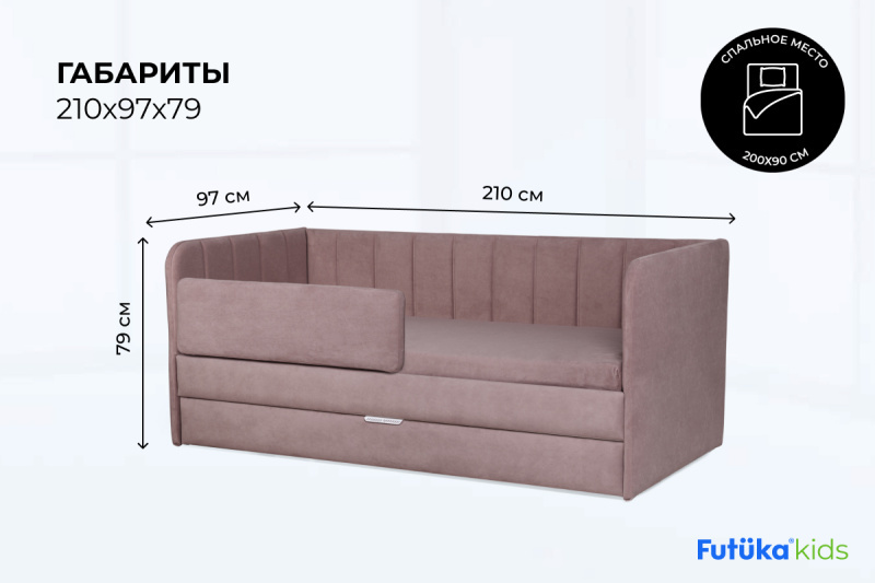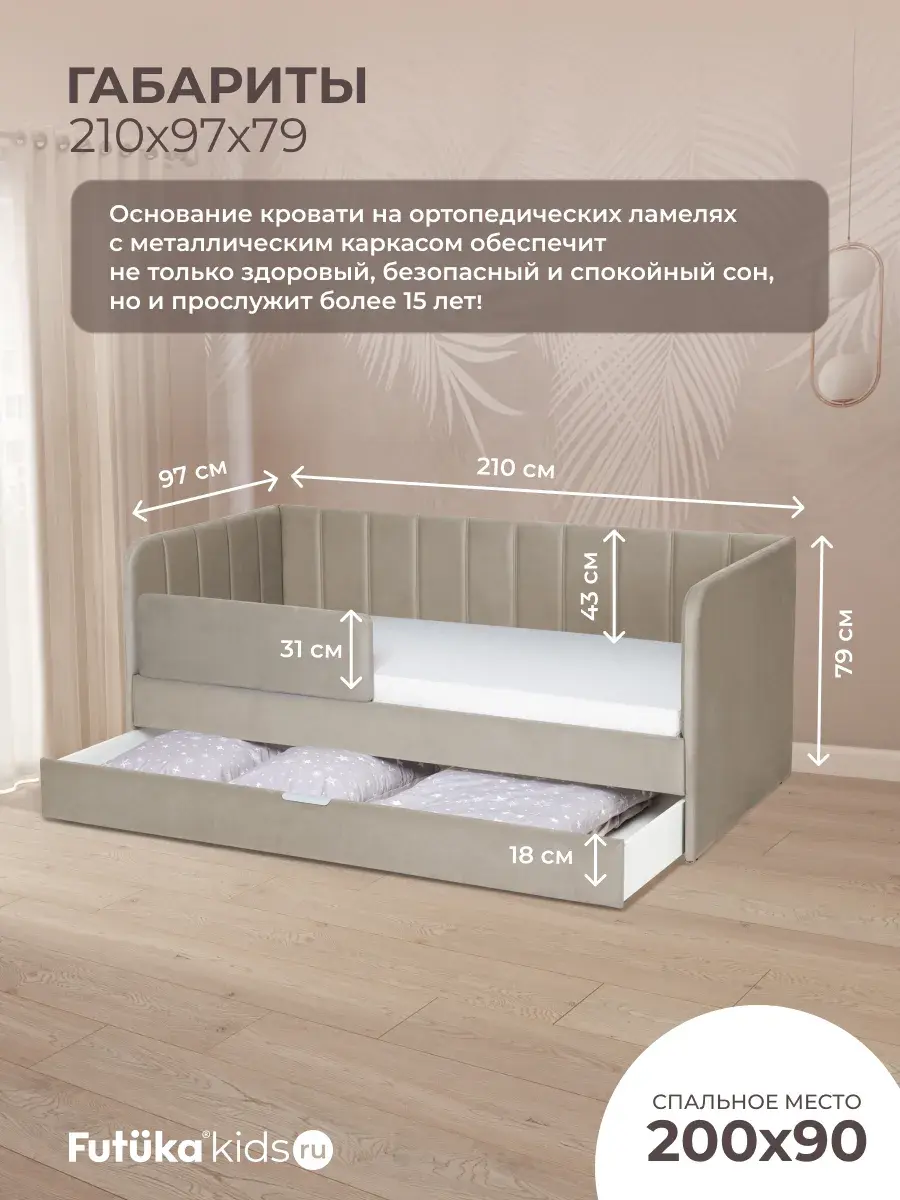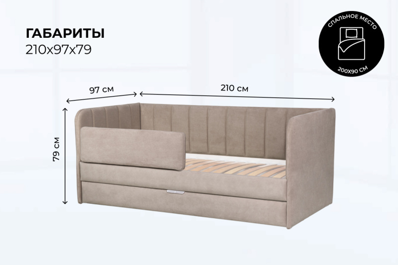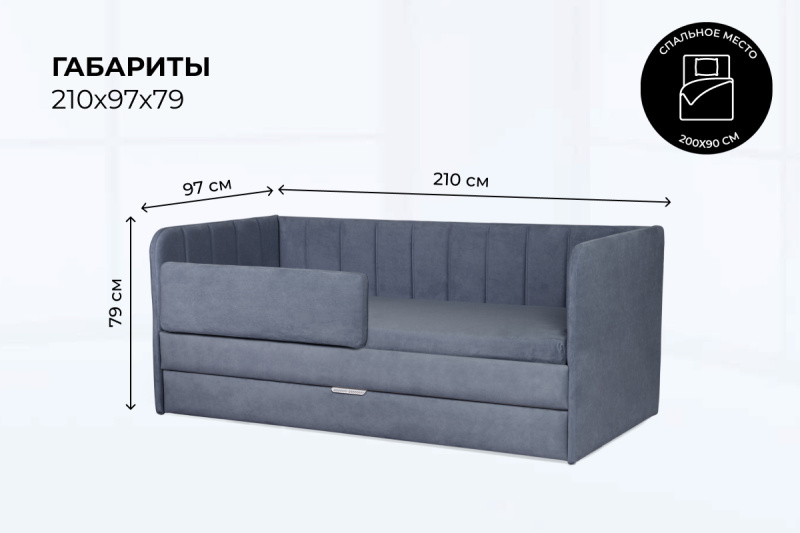 Размер спального места 200*90 см – у вас не возникнет сложностей с подбором матраса. А ребенок сможет спать на кровати от 2 до 14-16 лет! Ему будет достаточно простора.