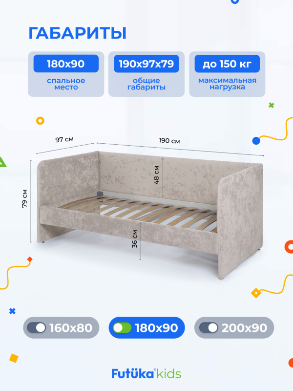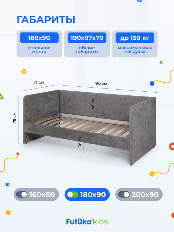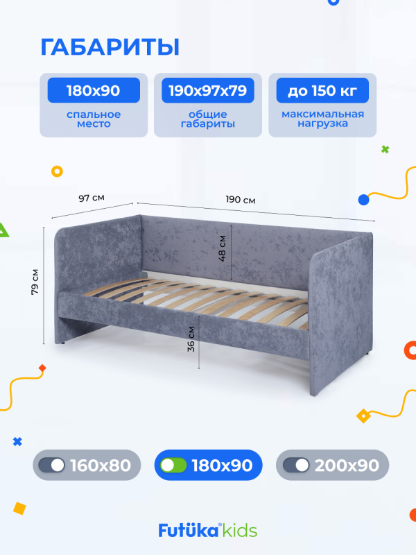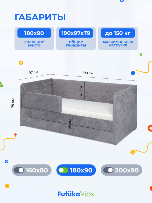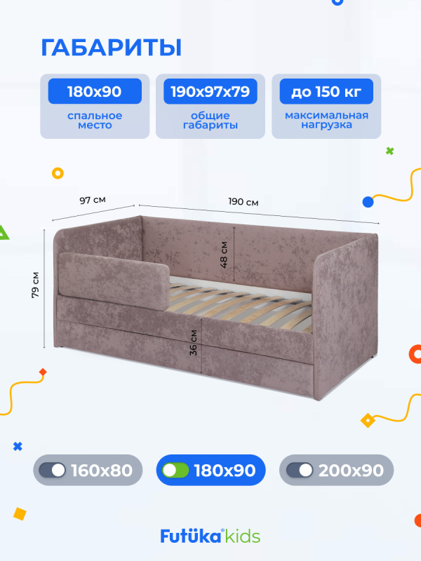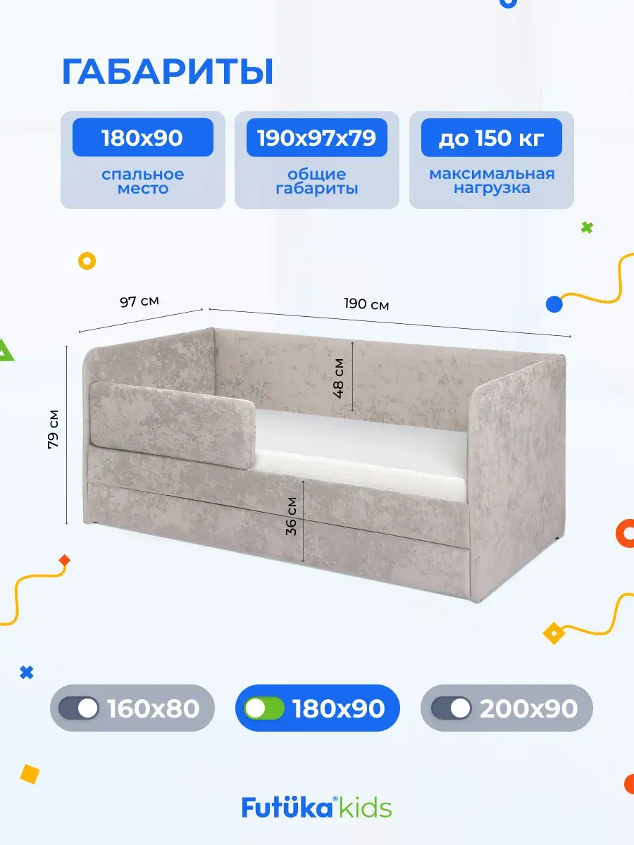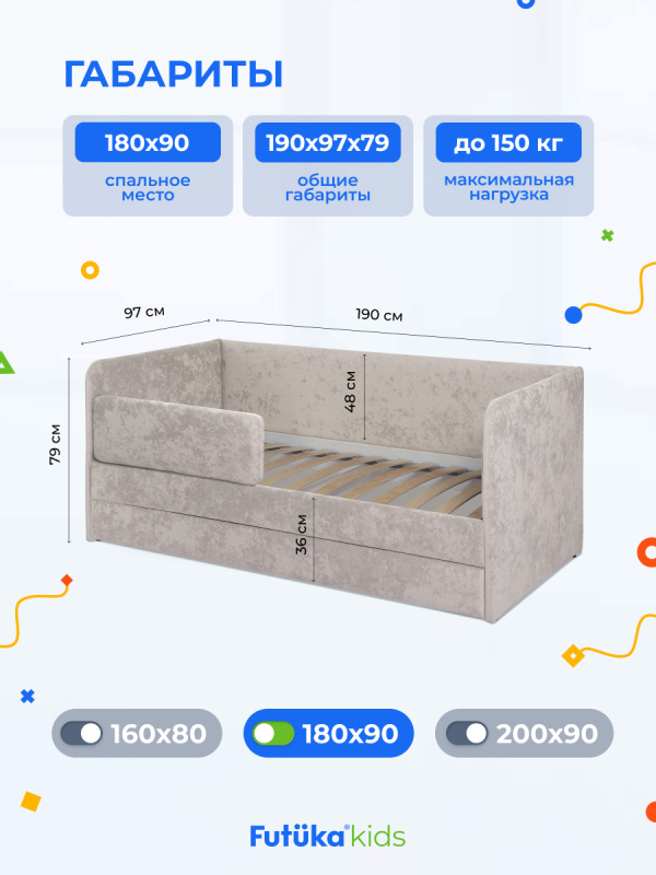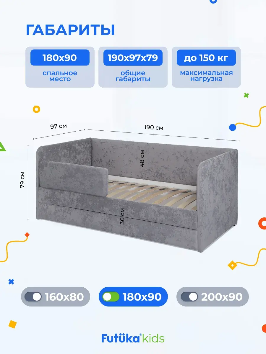 2. Универсальность: размер кровати составляет 80x160 90x180 или 90x200 см, что делает её подходящей для детей разных возрастов.
