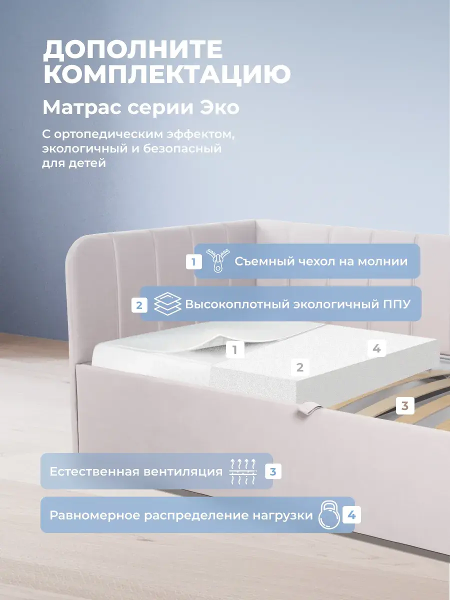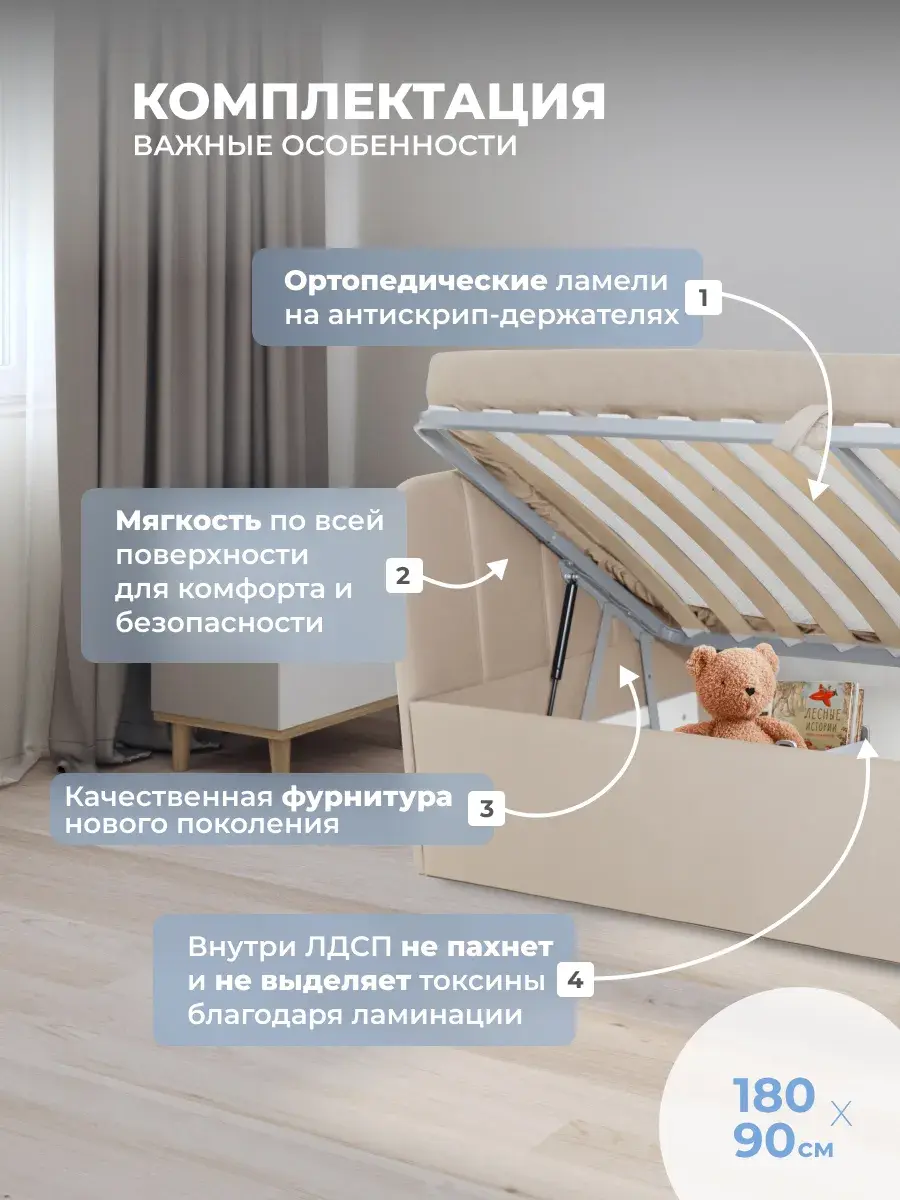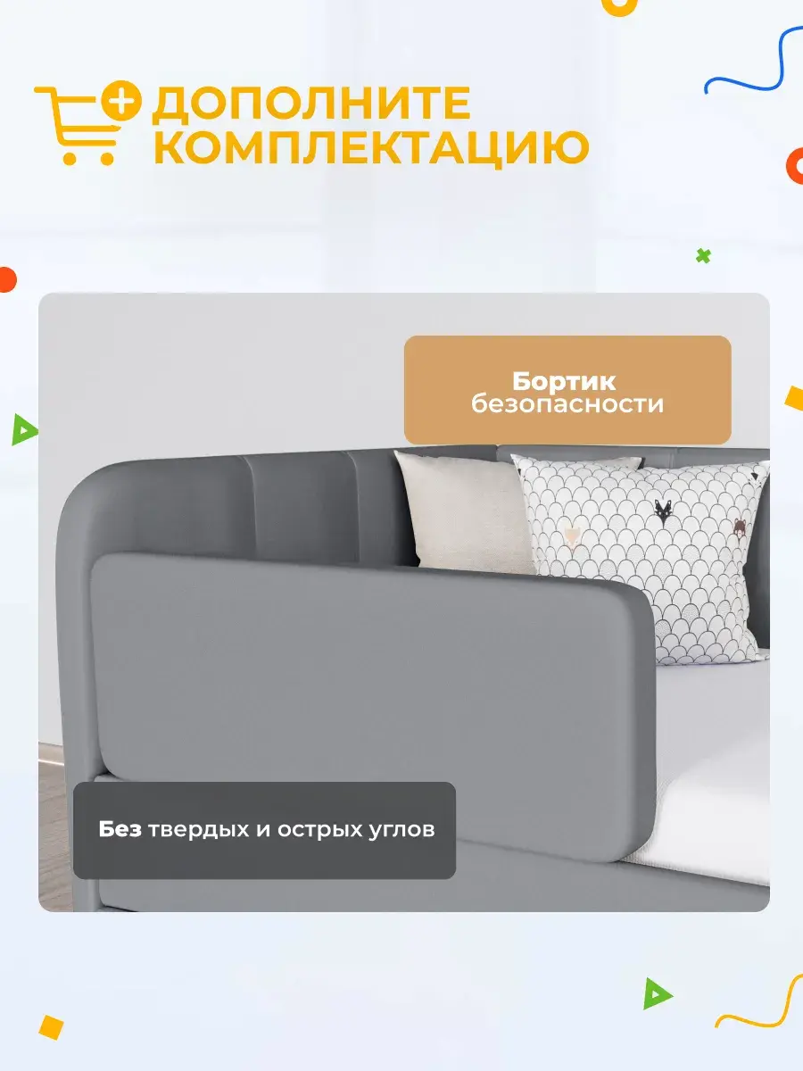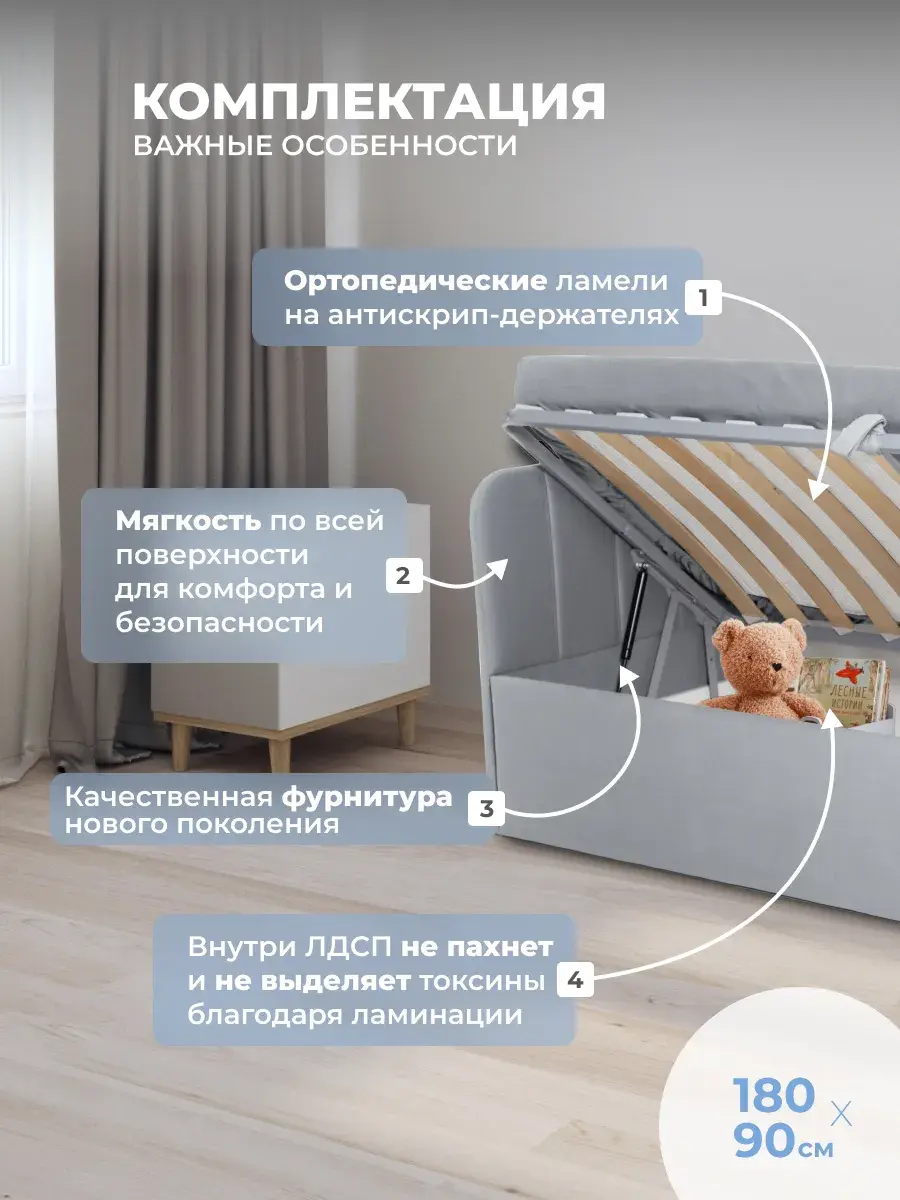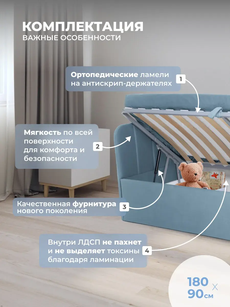 Безопасность: имеет сглаженные углы по всему периметру, а всеобщая мягкость кровати не допустит ушибов.