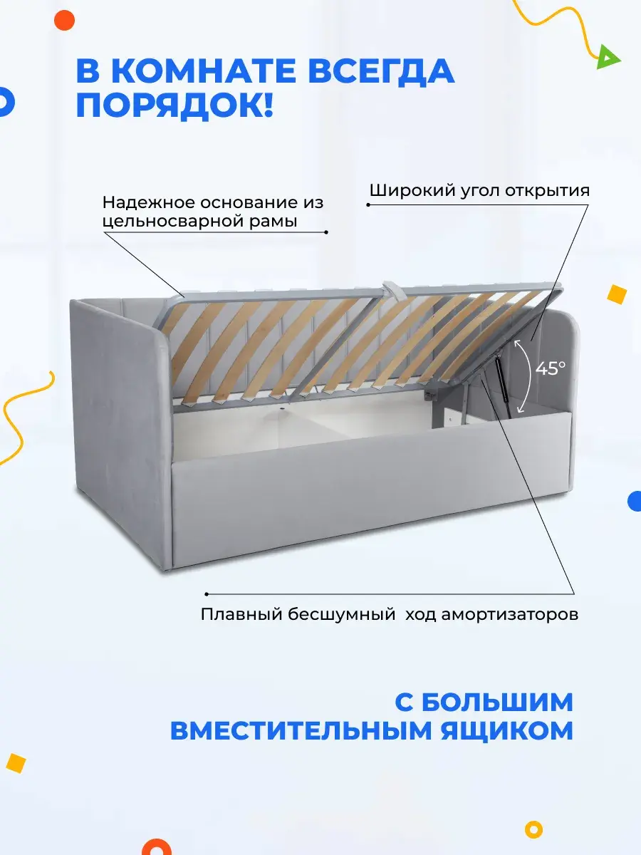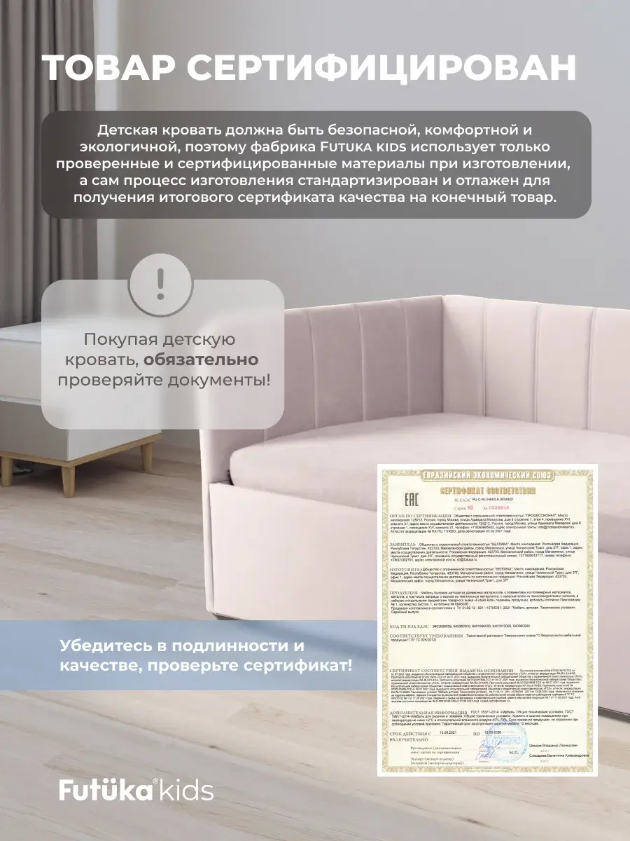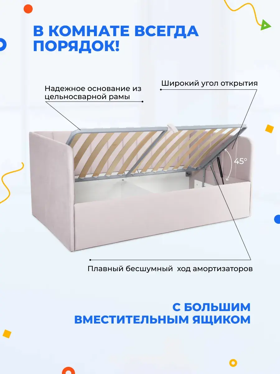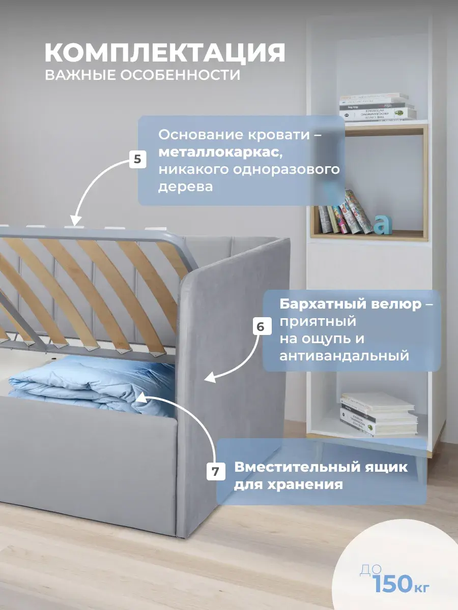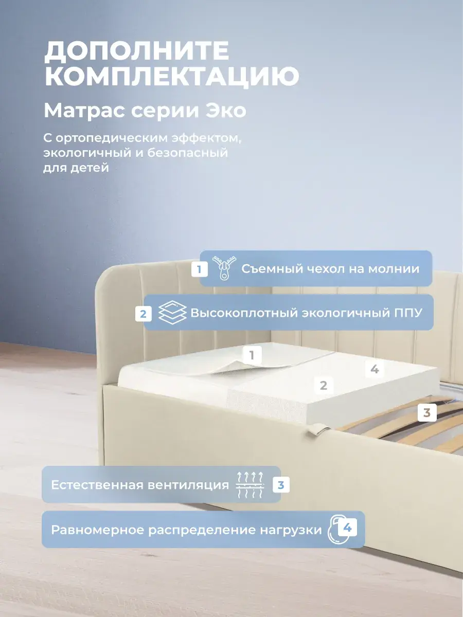 Безопасность: имеет сглаженные углы по всему периметру, а всеобщая мягкость кровати не допустит ушибов.