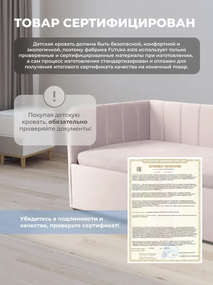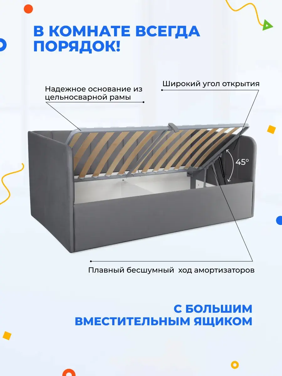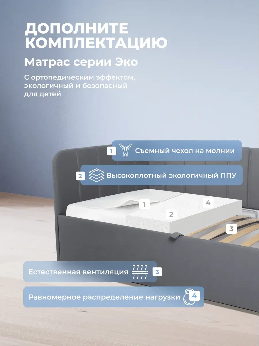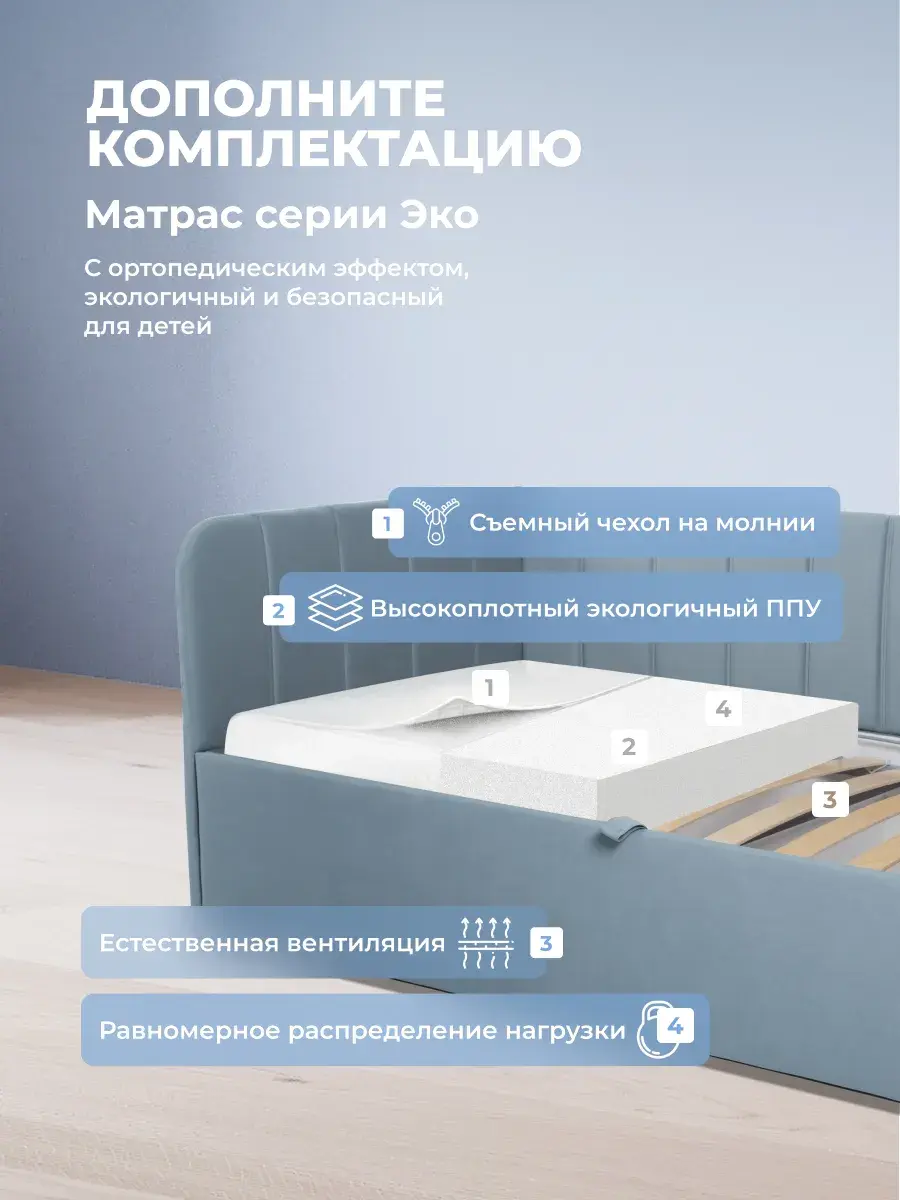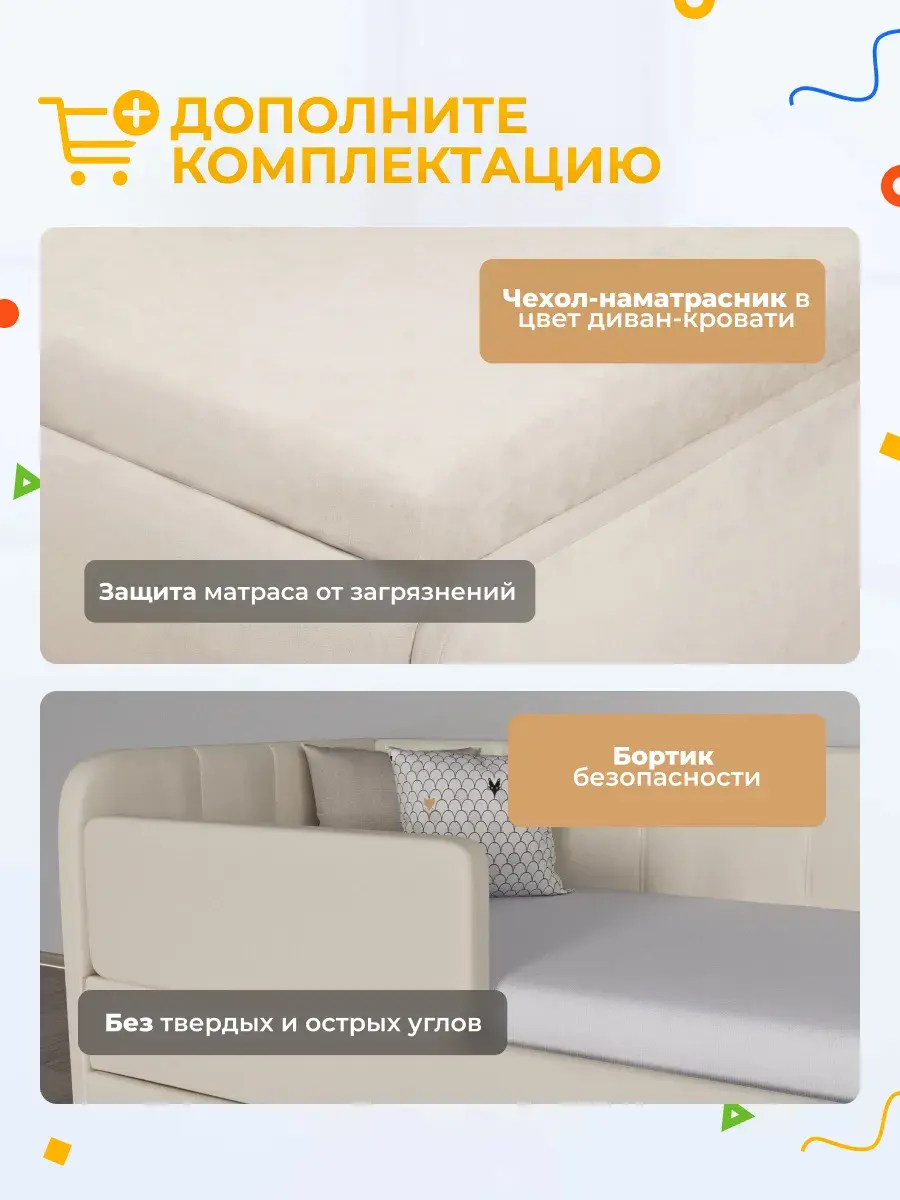 Безопасность: имеет сглаженные углы по всему периметру, а всеобщая мягкость кровати не допустит ушибов.