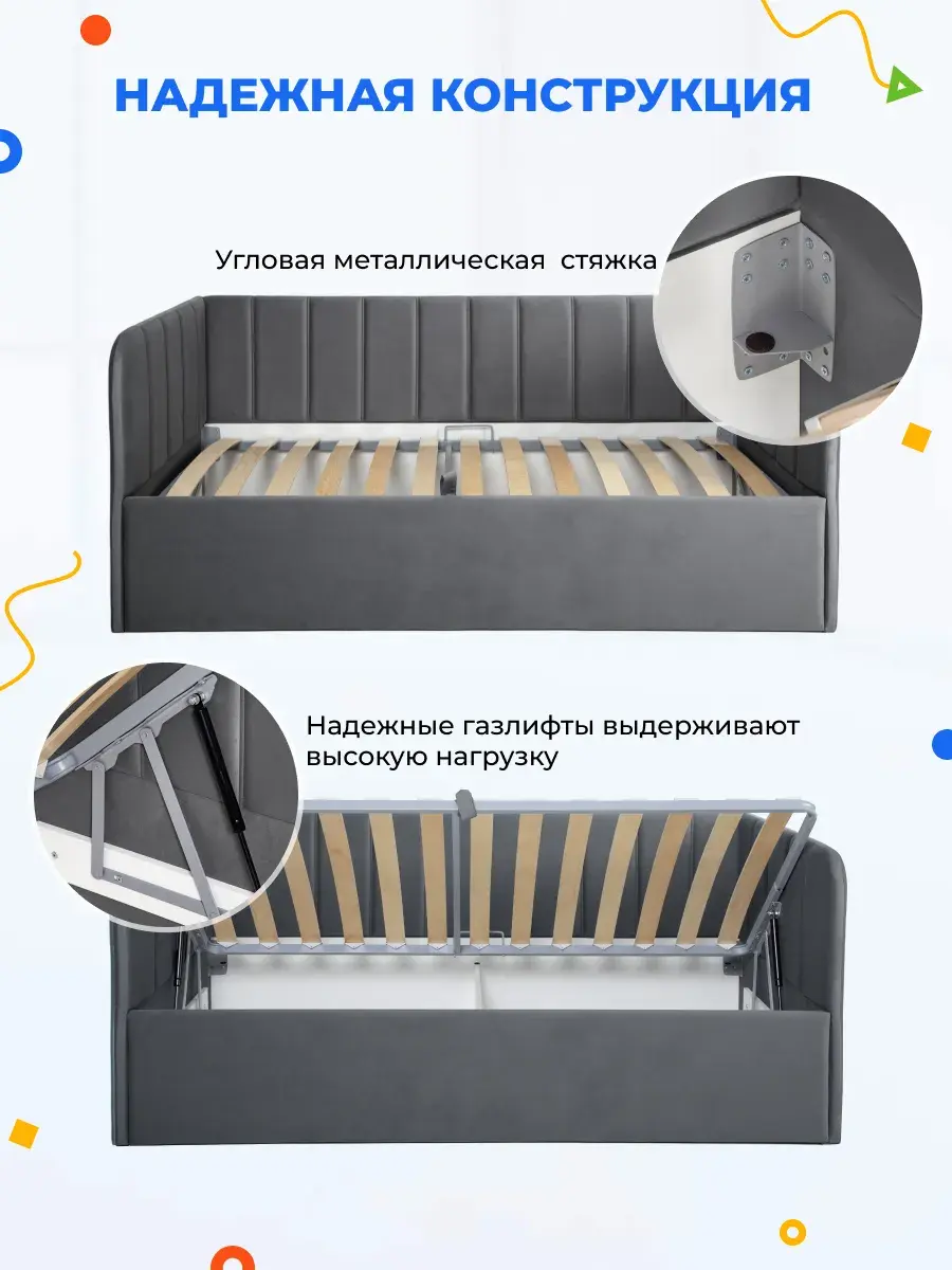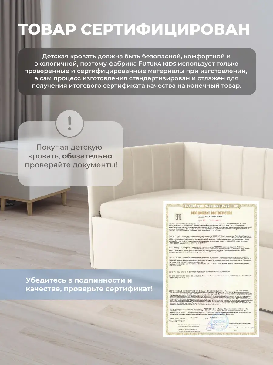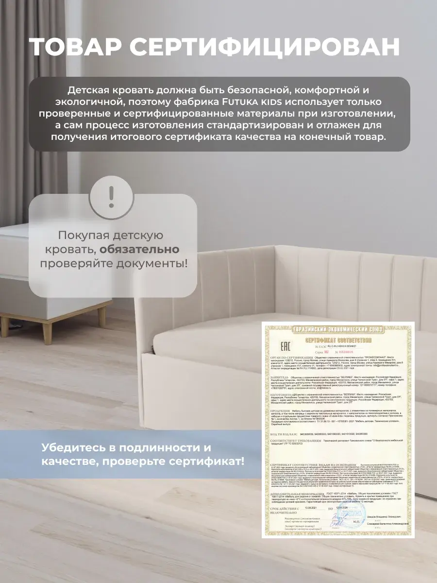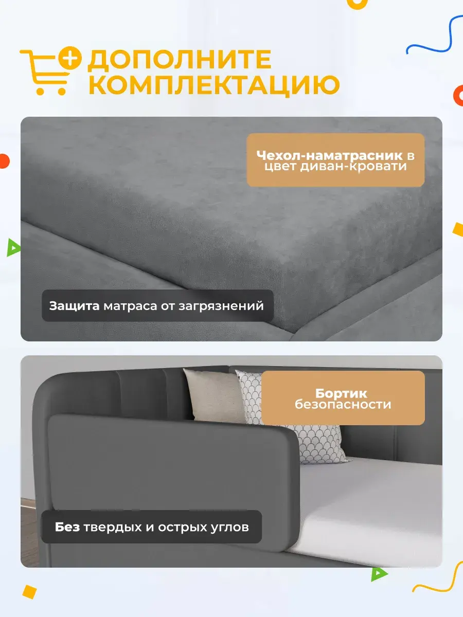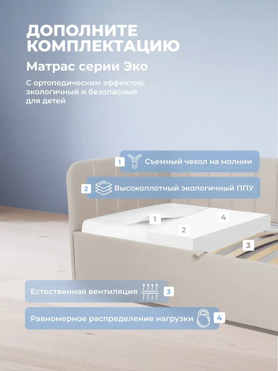 Безопасность: имеет сглаженные углы по всему периметру, а всеобщая мягкость кровати не допустит ушибов.