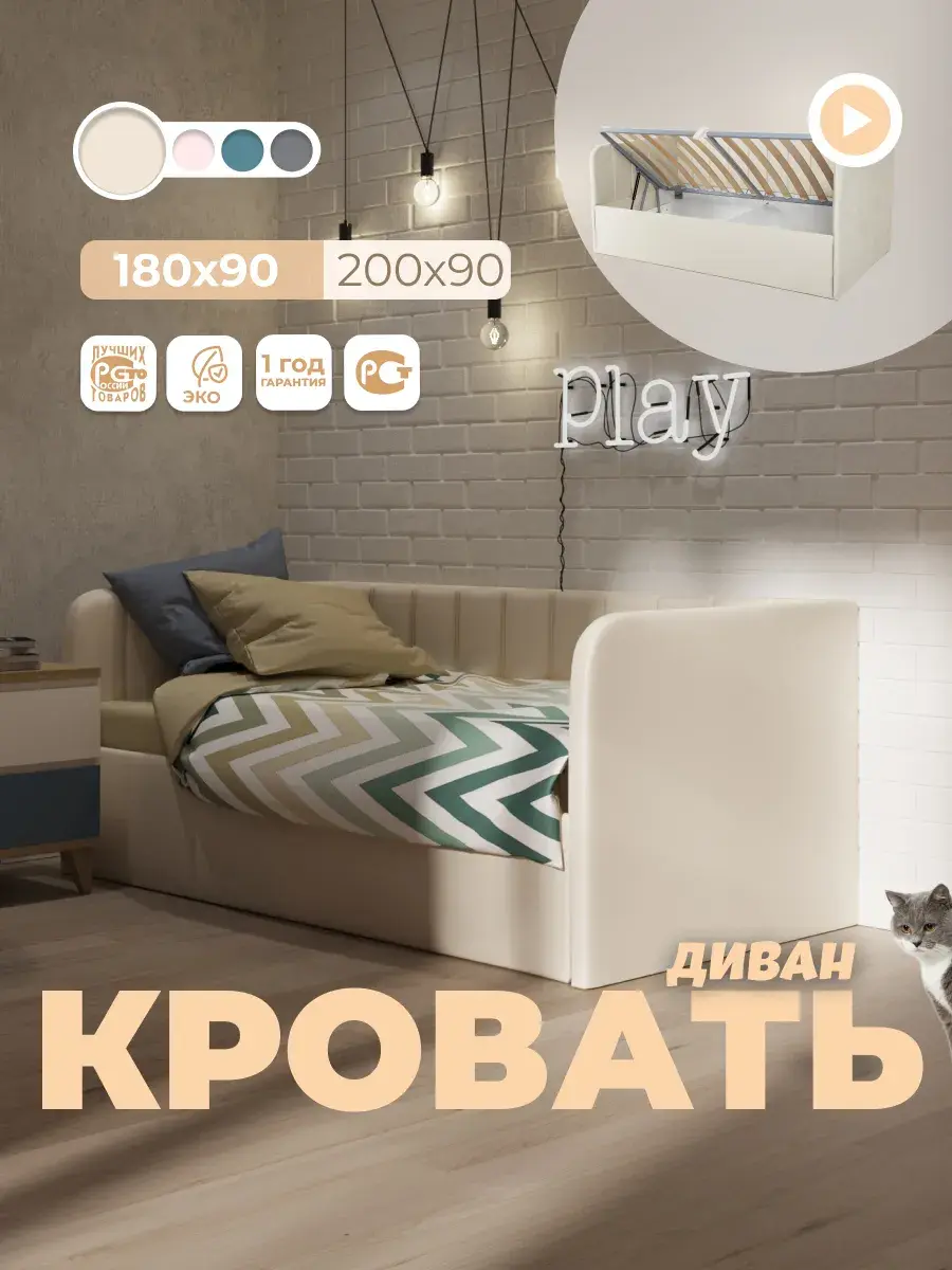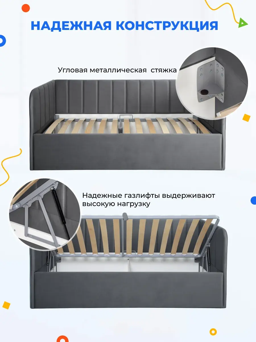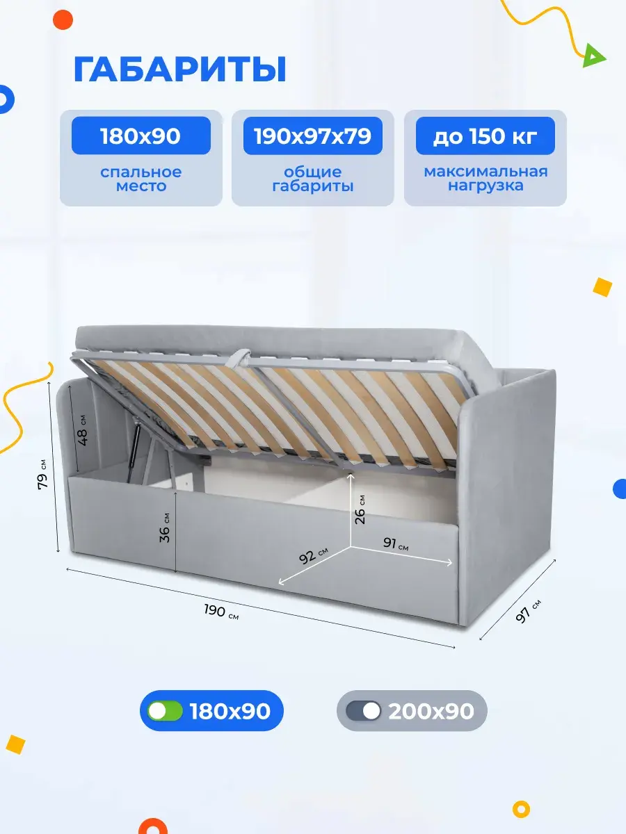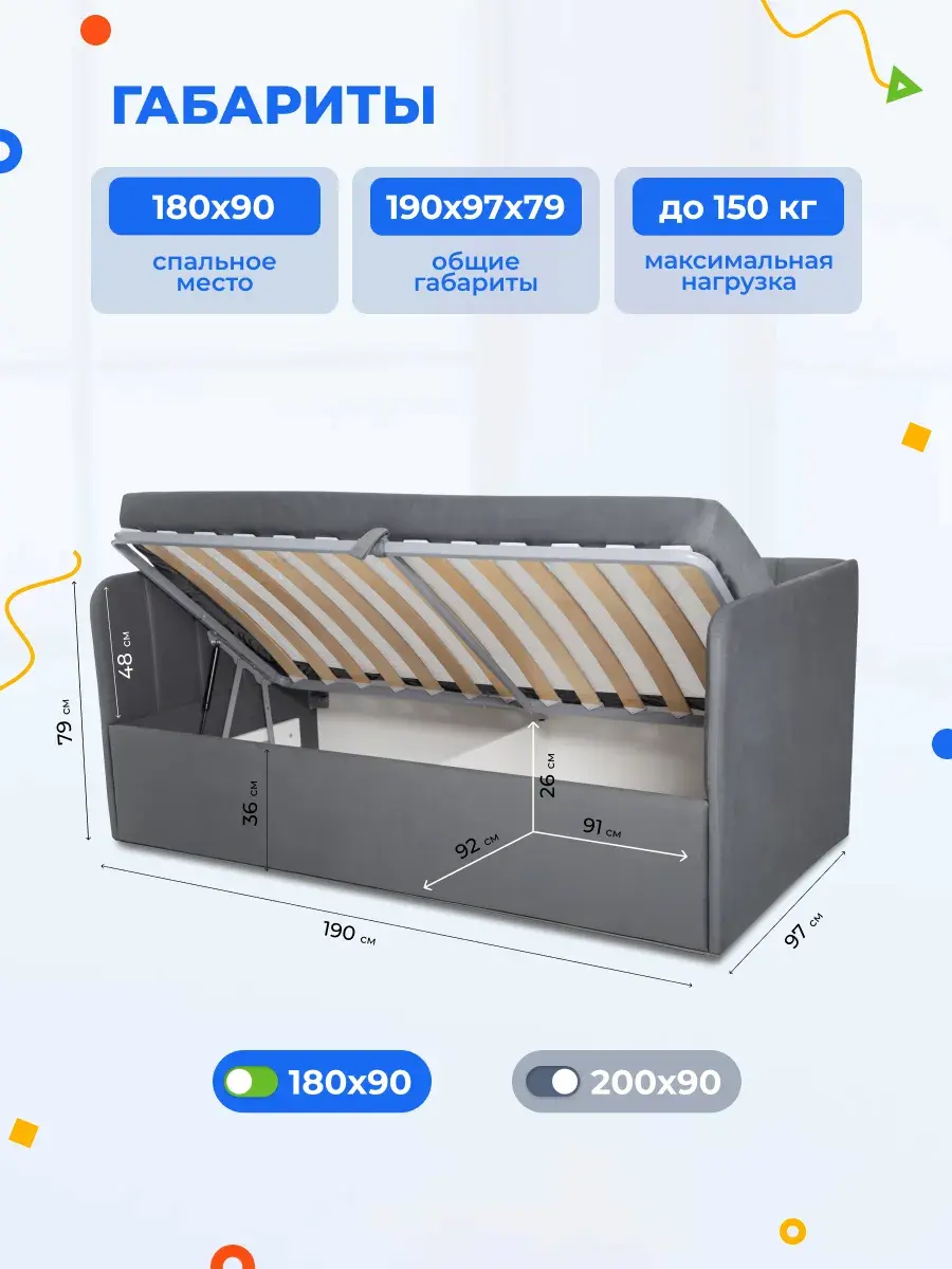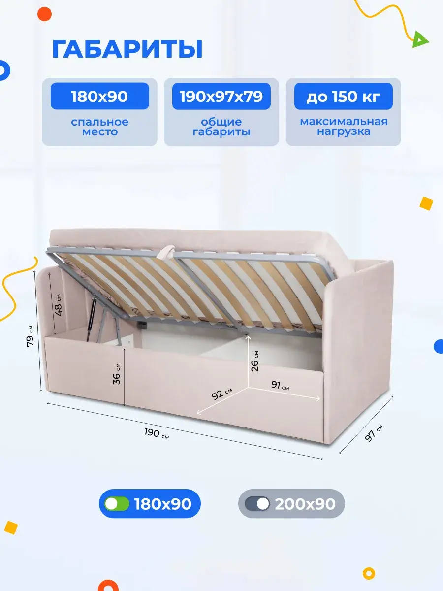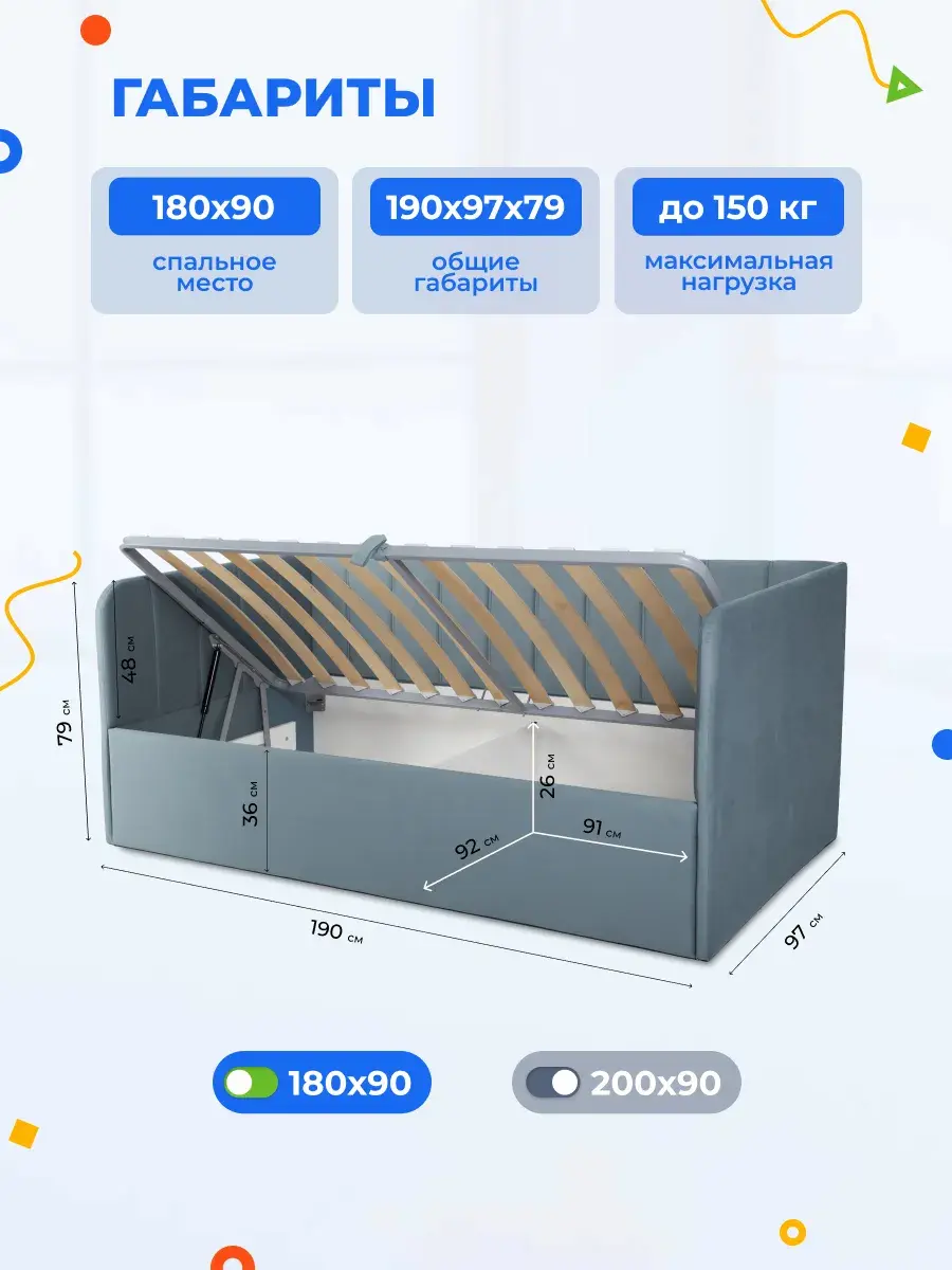 2. Универсальность: размер кровати составляет 90x180 или 90x200 см, что делает её подходящей для детей разных возрастов.