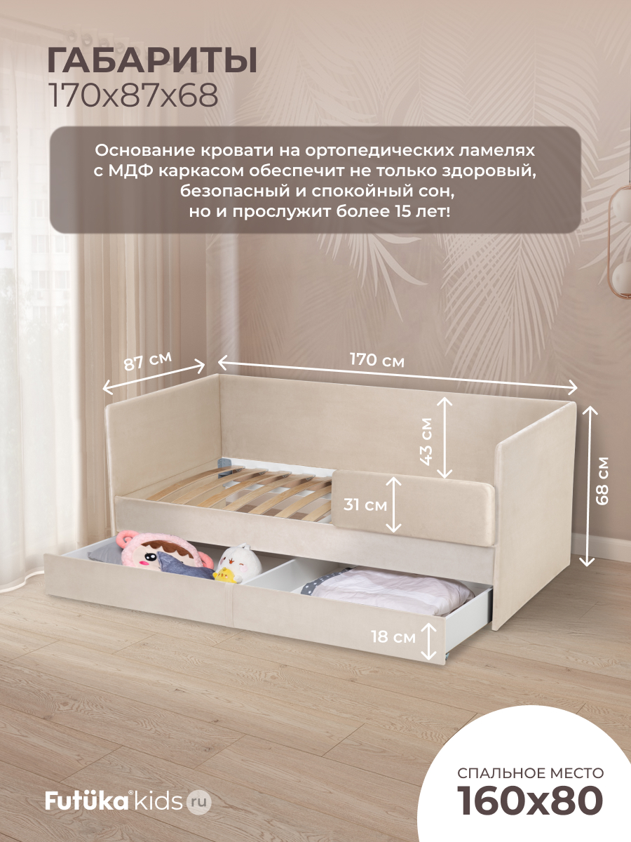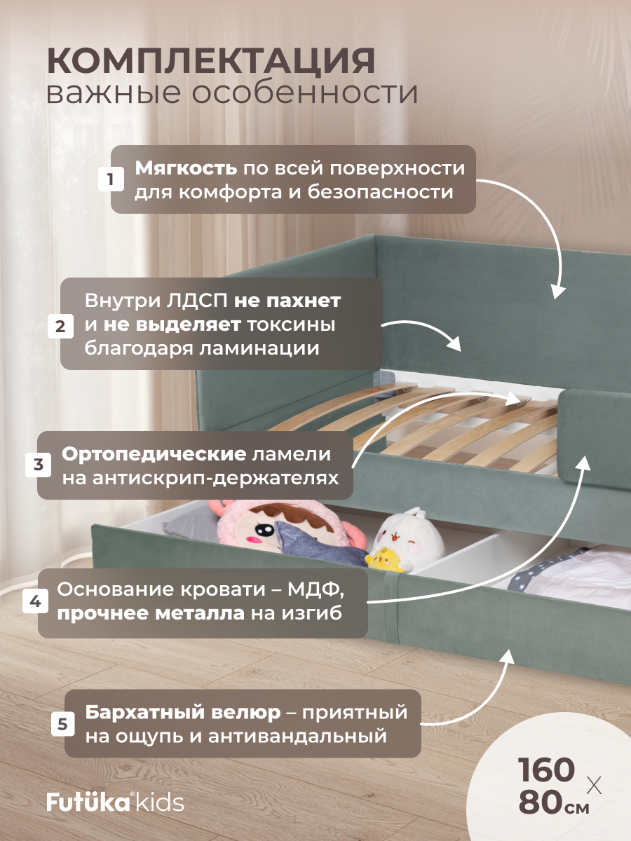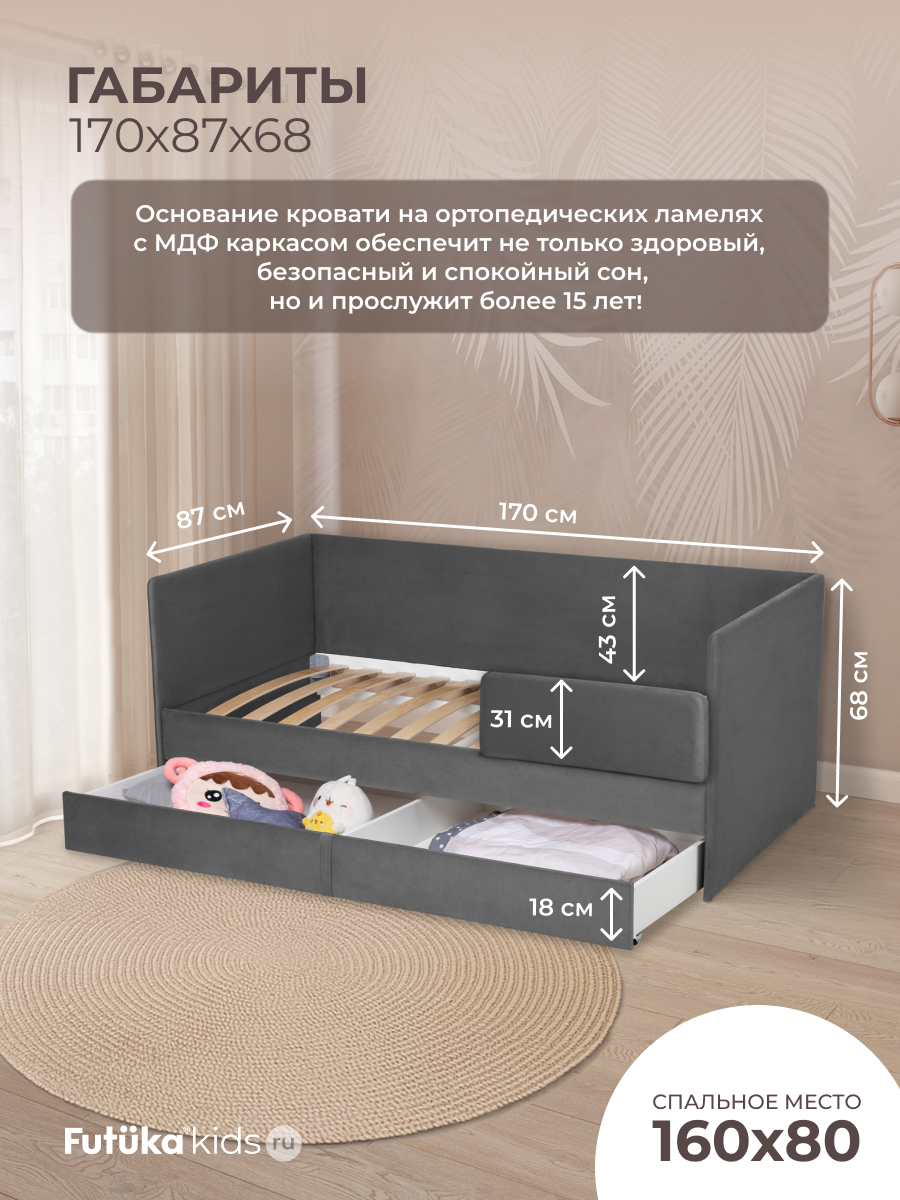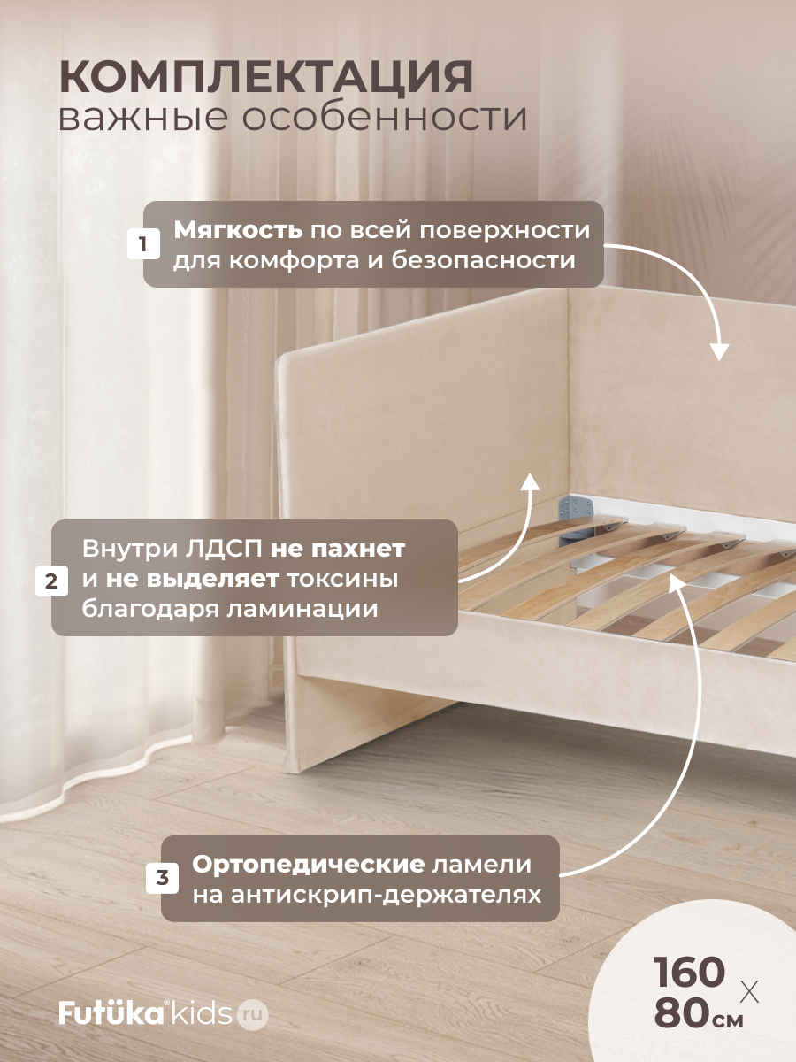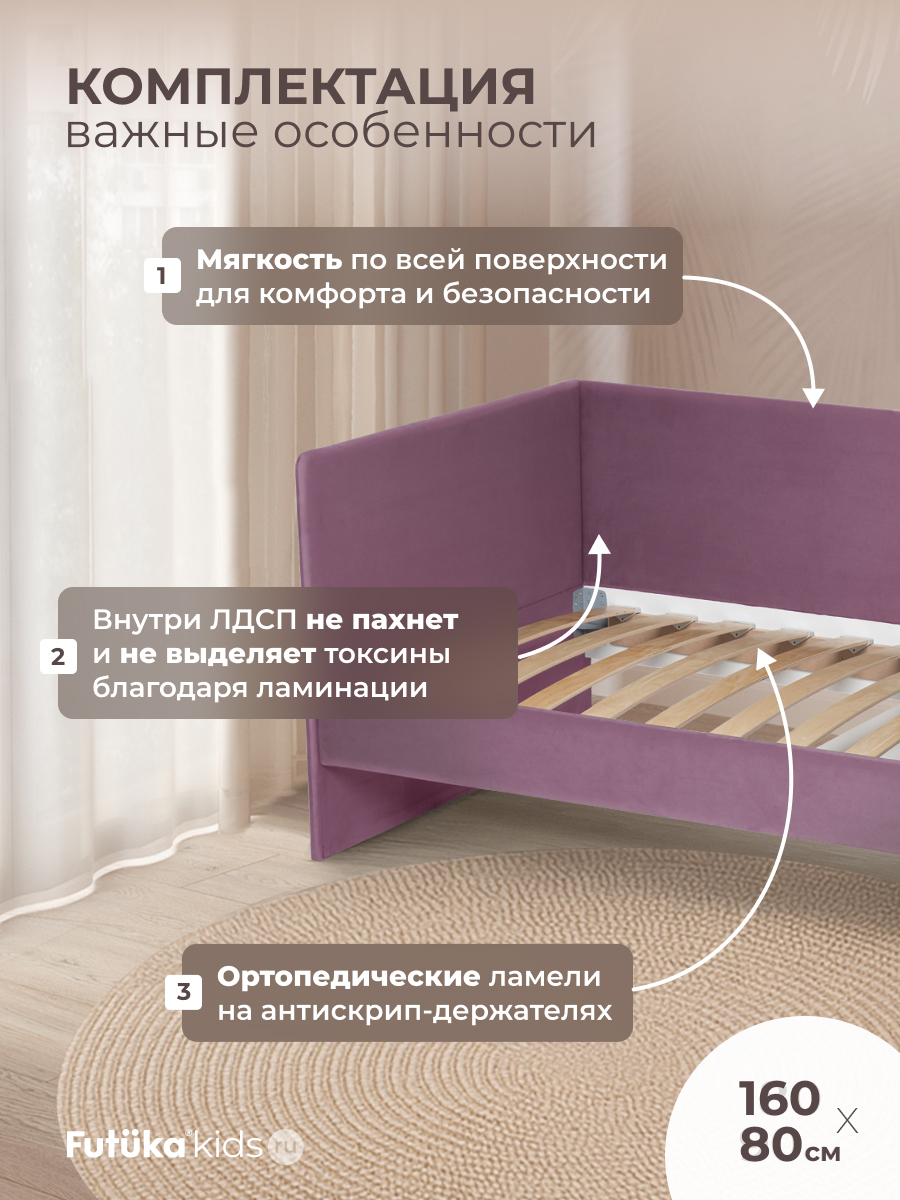 1. Безопасность: имеет сглаженные углы по всему периметру, а всеобщая мягкость кровати не допустит ушибов.