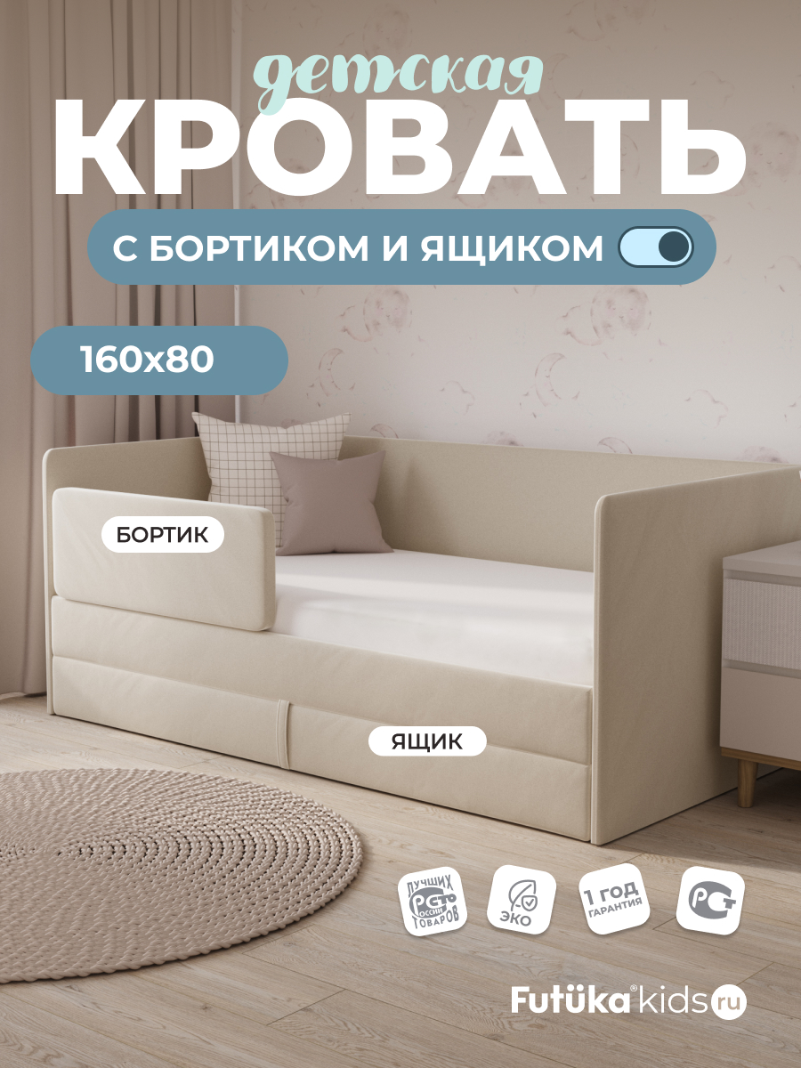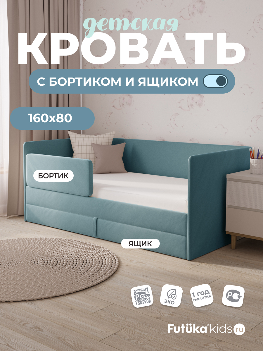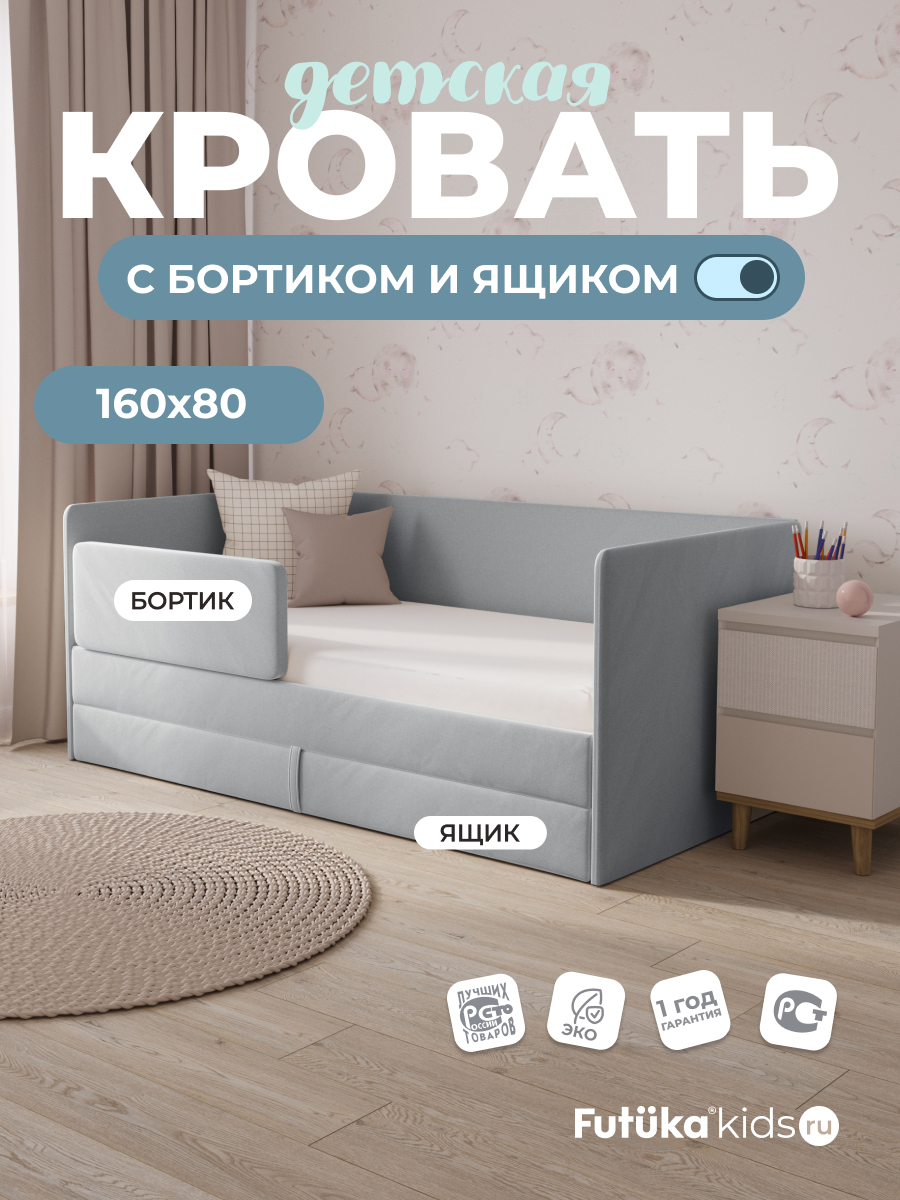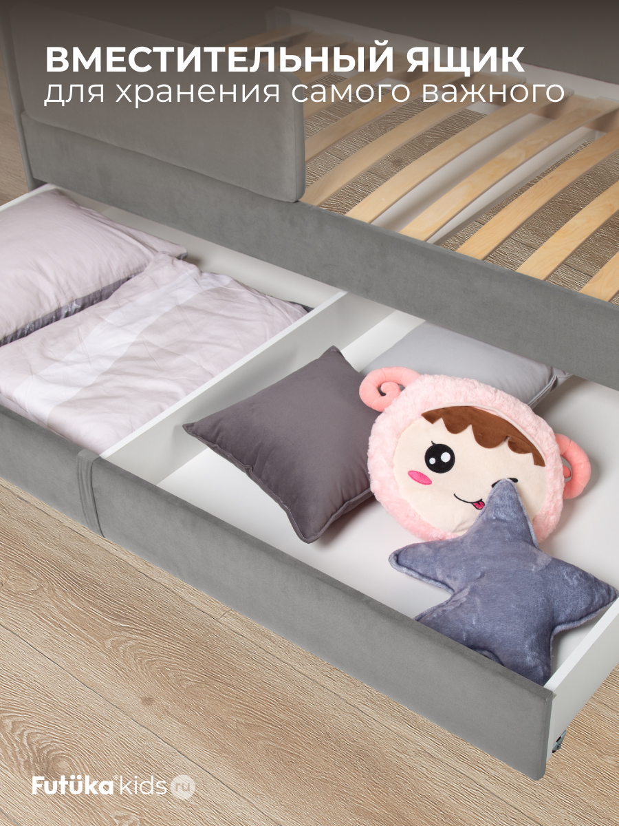 Стандартная комплектация - кровать, ящик для хранения, бортик безопасности