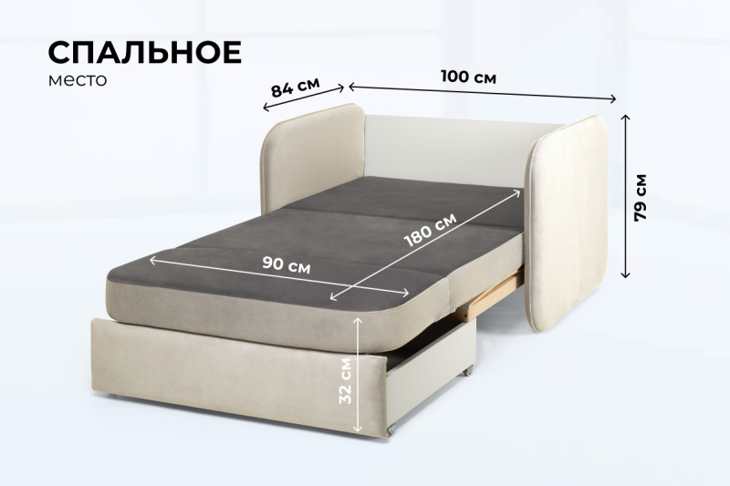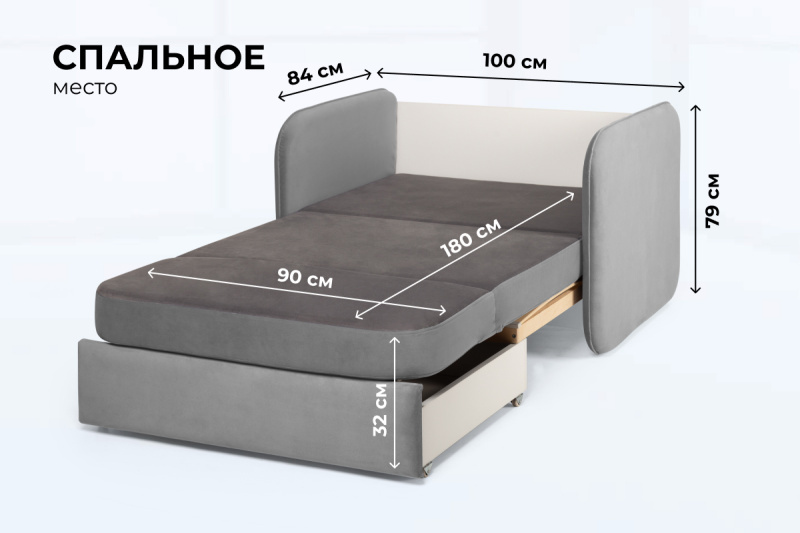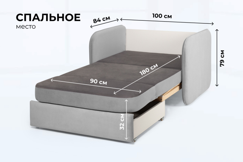 2. Универсальность: размер кресло-кровати составляет 100x84 или 90x180 см в разложенном виде.