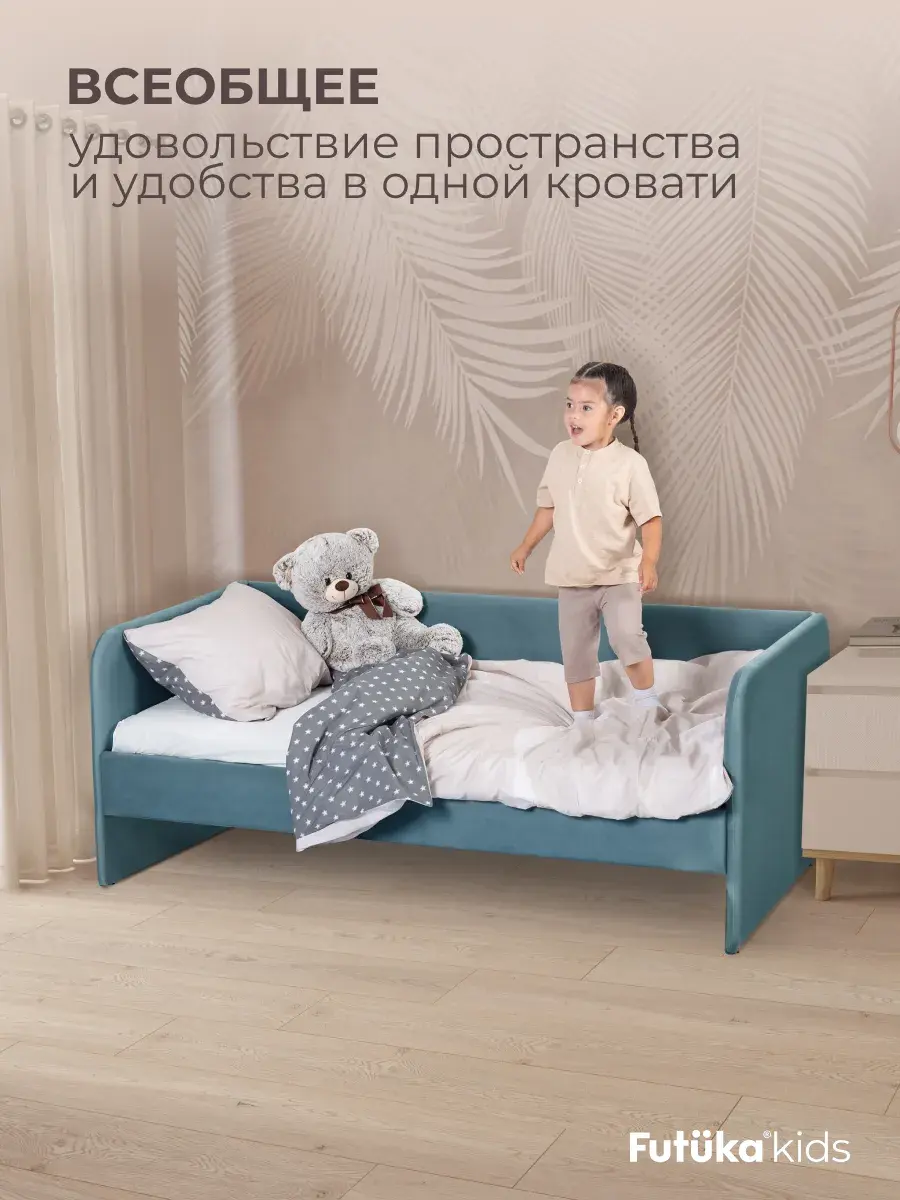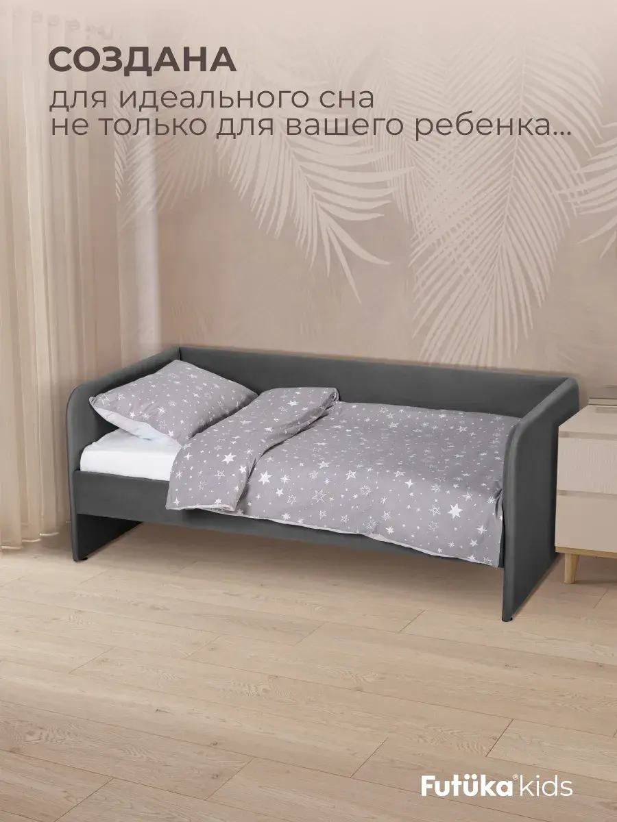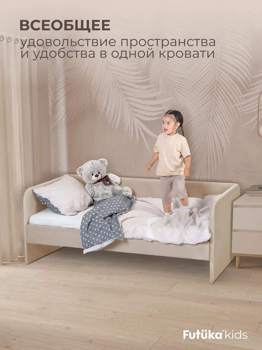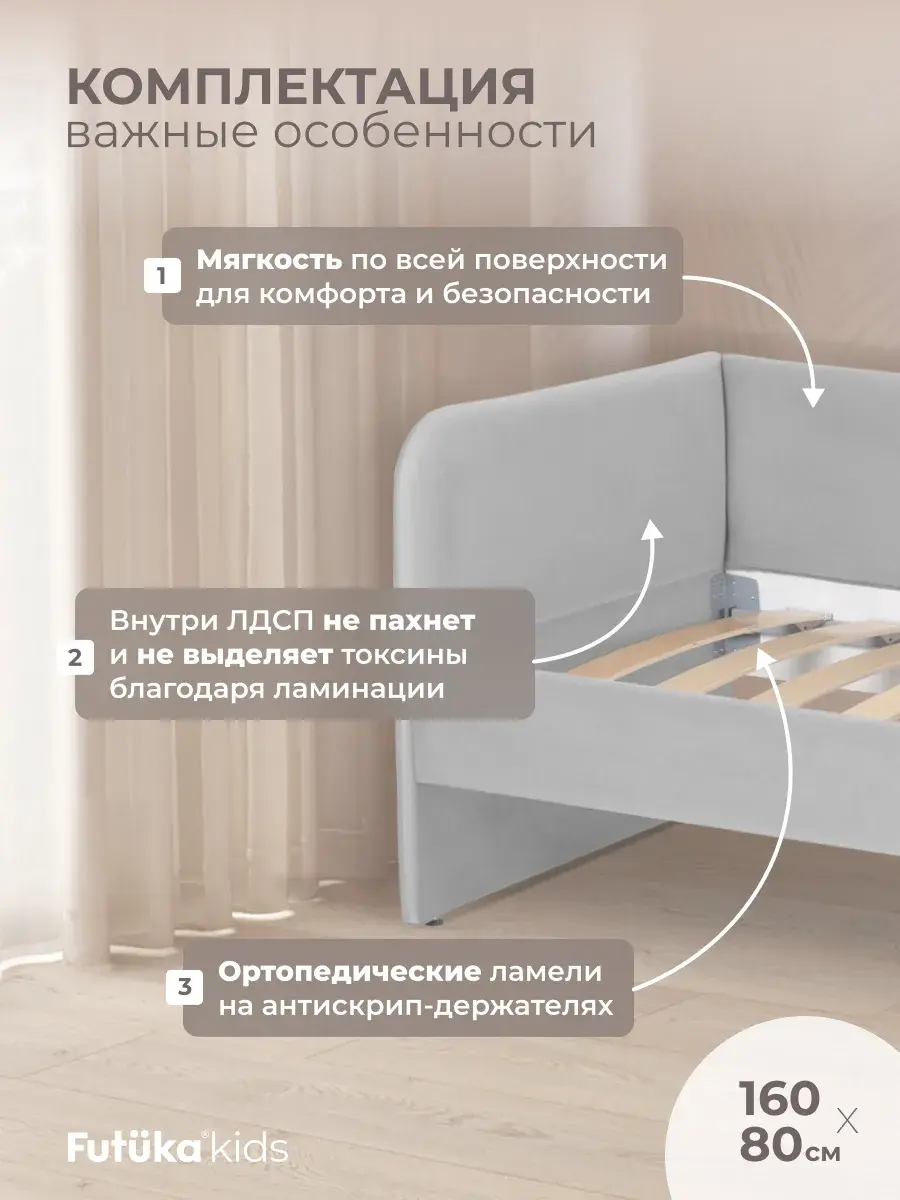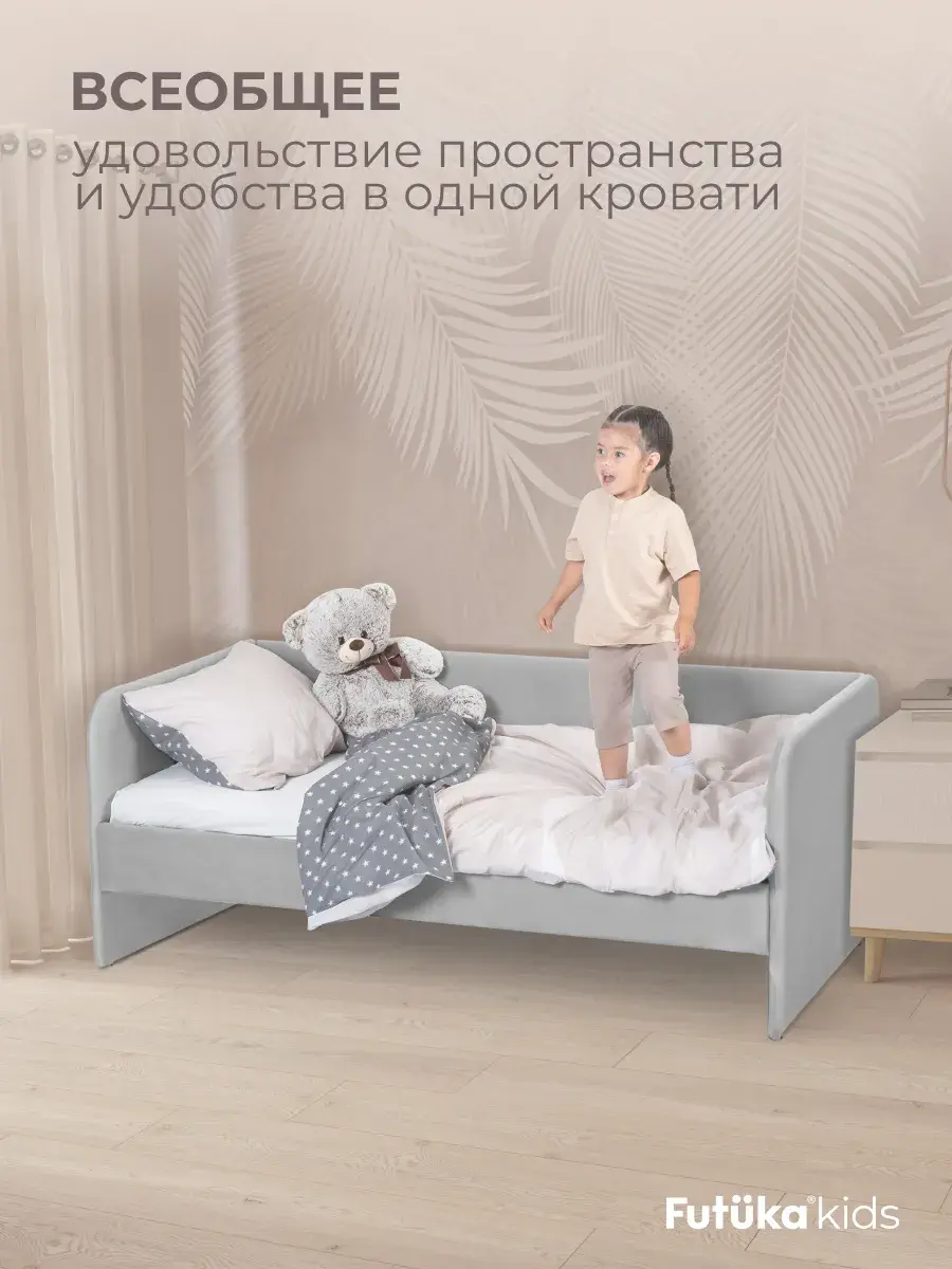 Мягкая кровать в современном стиле украсит интерьер любой детской комнаты, подходит как для мальчиков, так и для девочек.