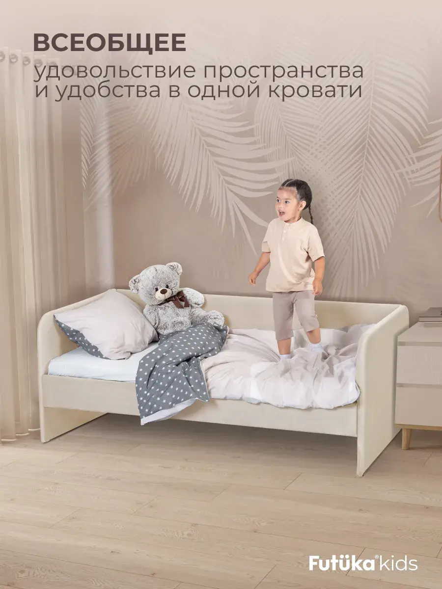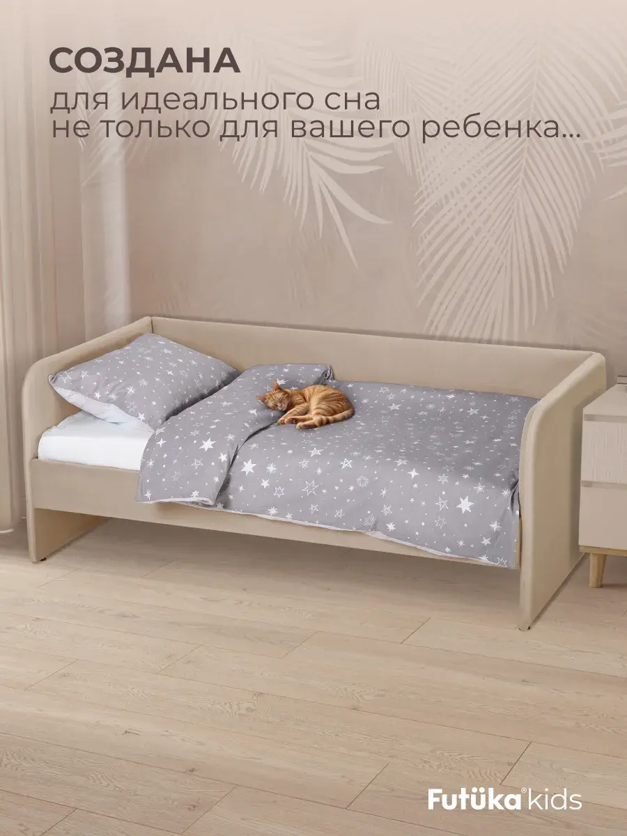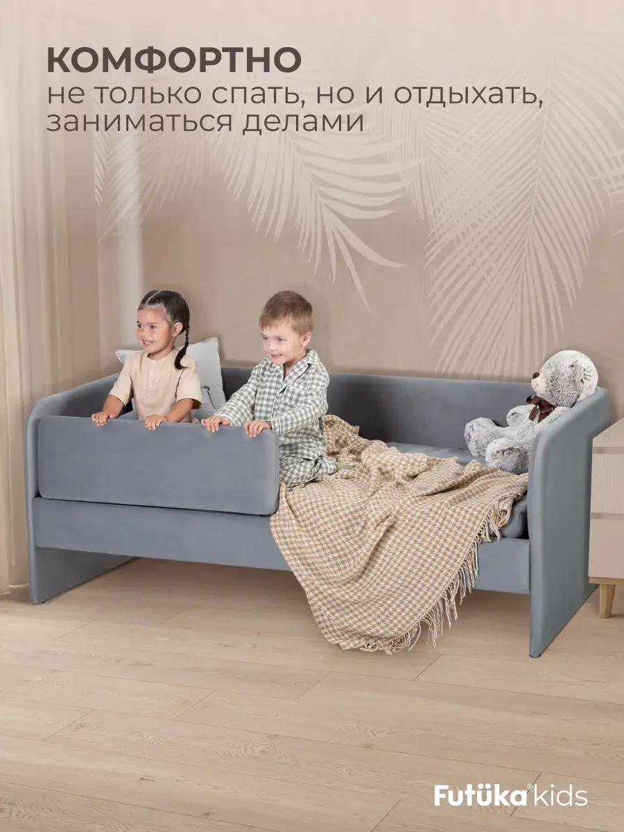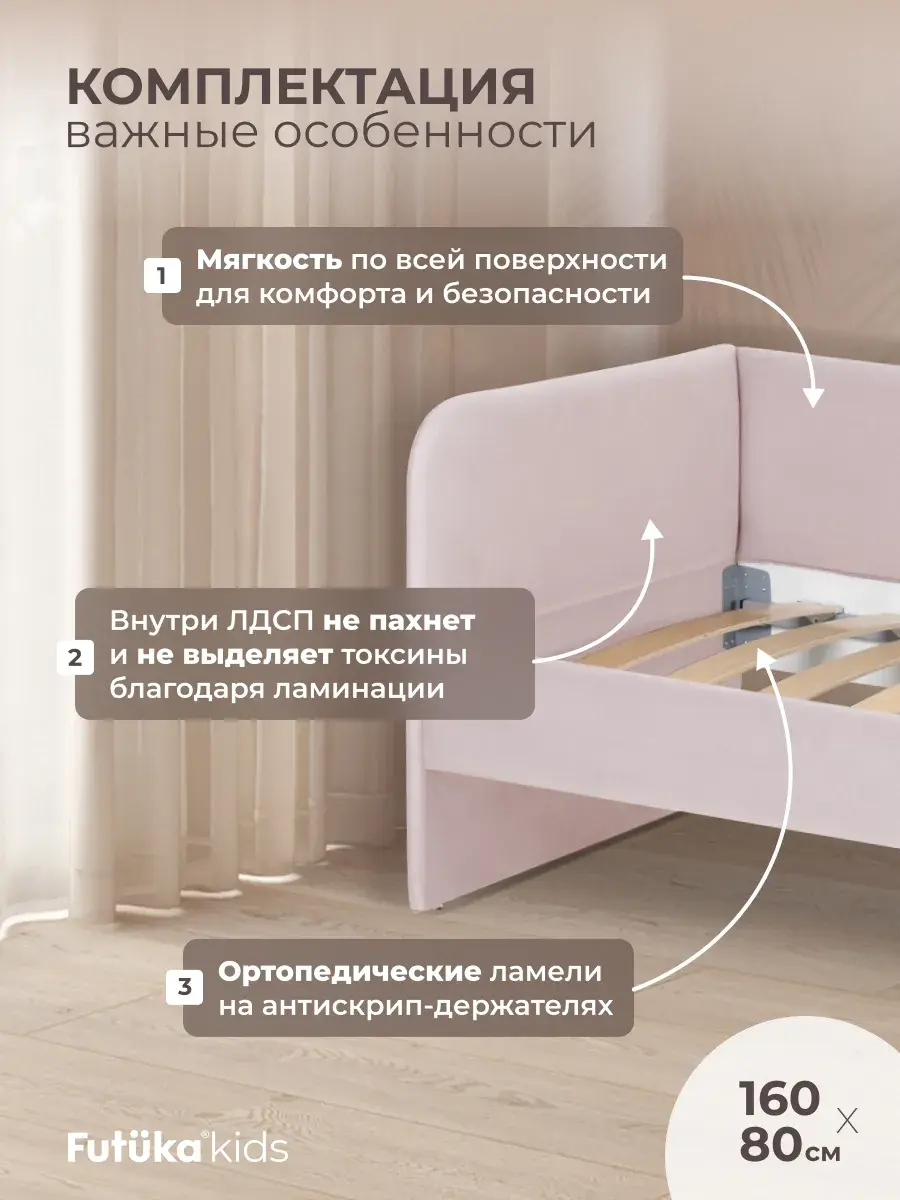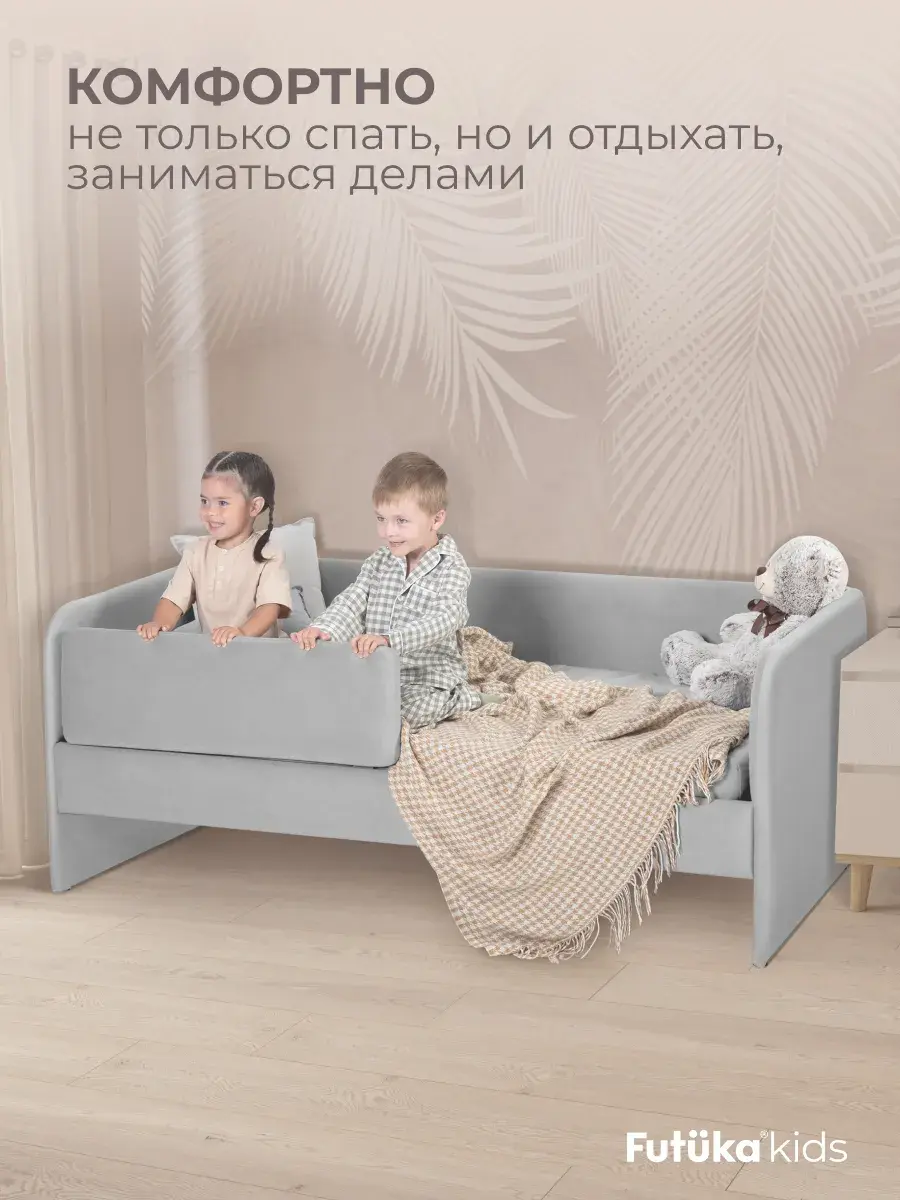 Мягкая кровать в современном стиле украсит интерьер любой детской комнаты, подходит как для мальчиков, так и для девочек.