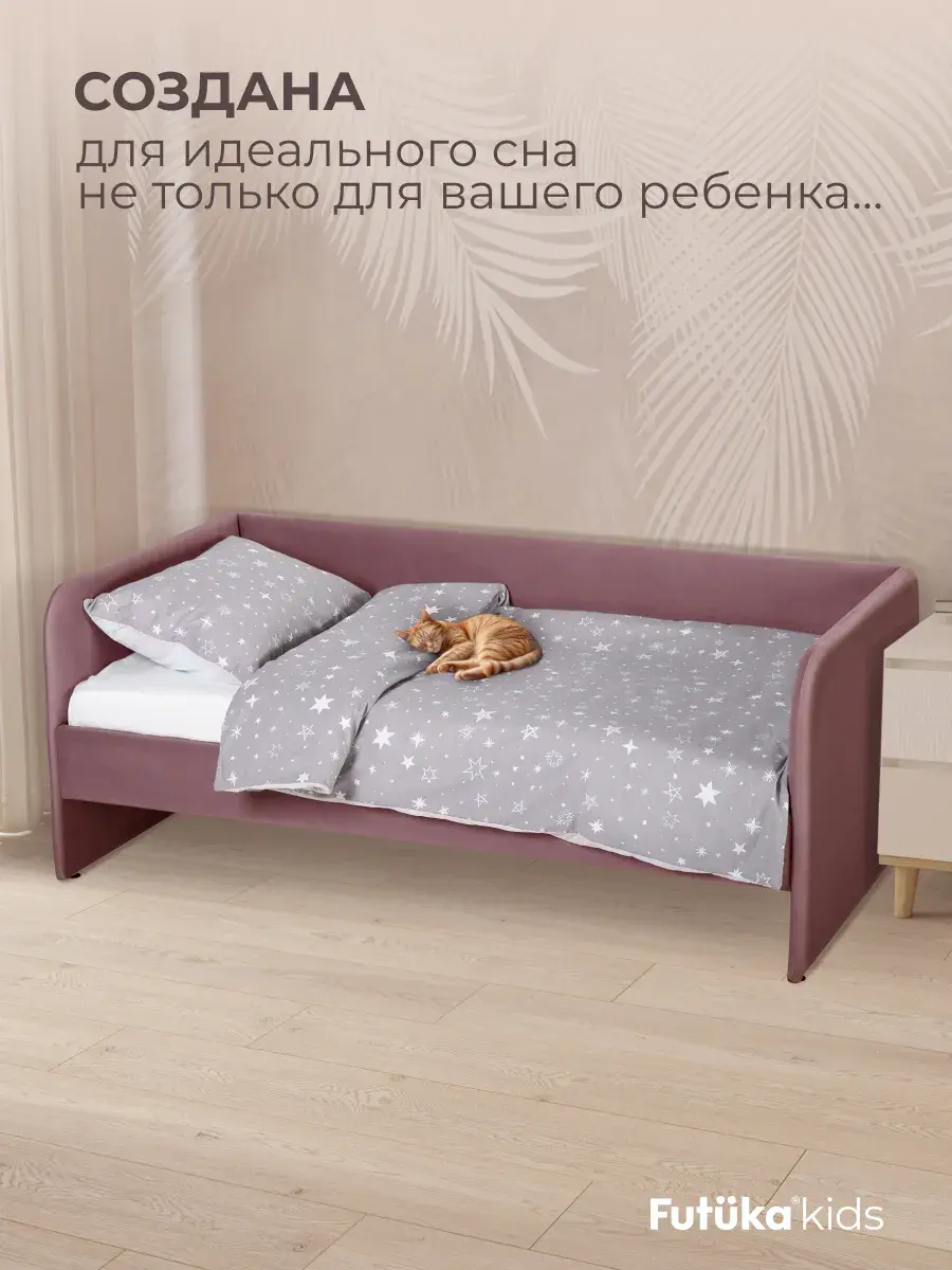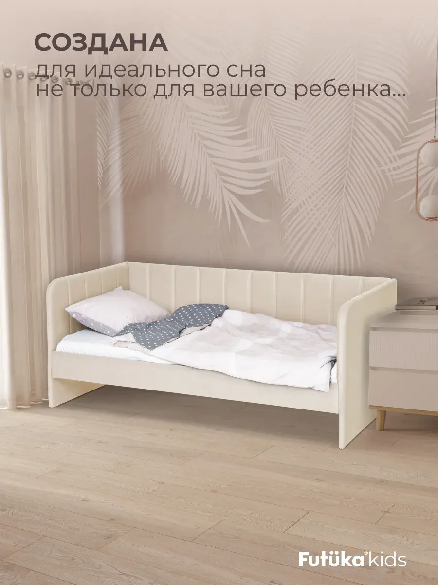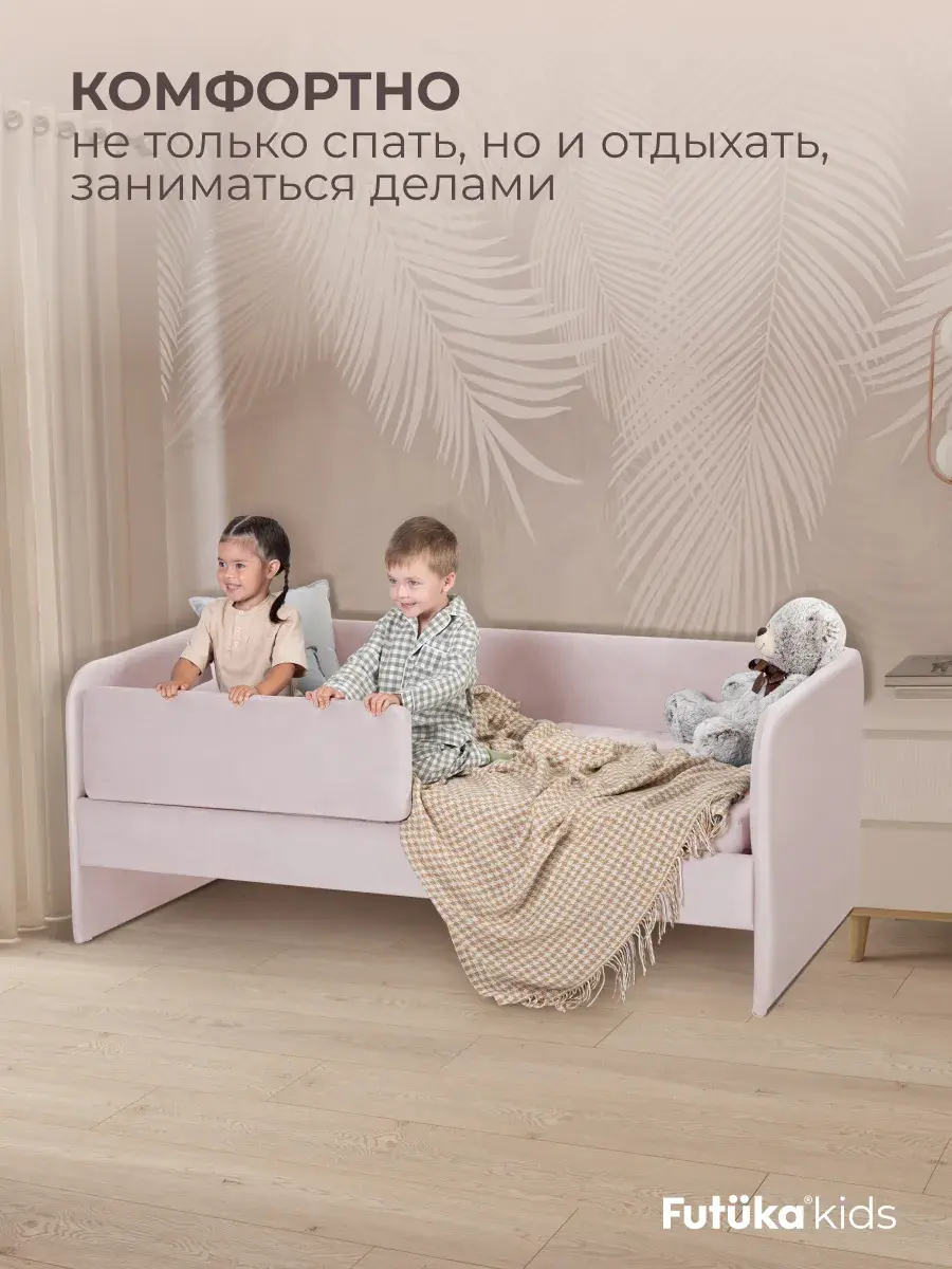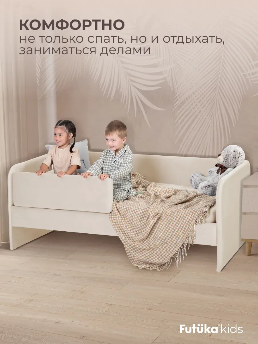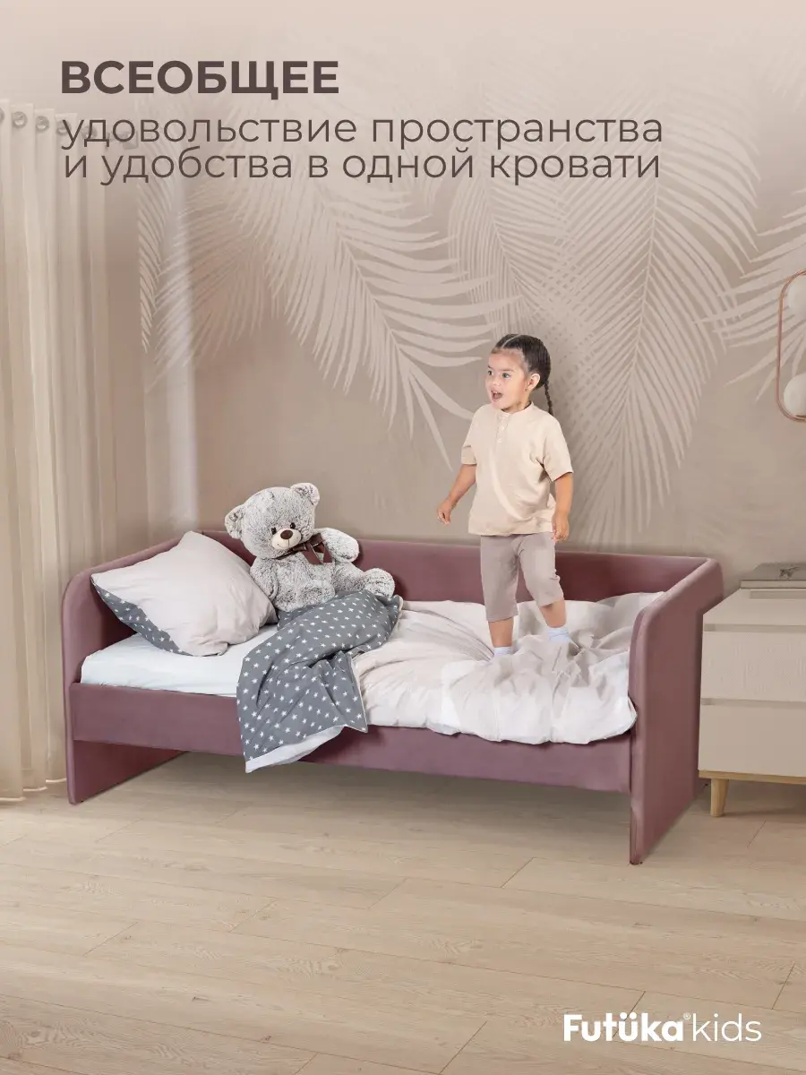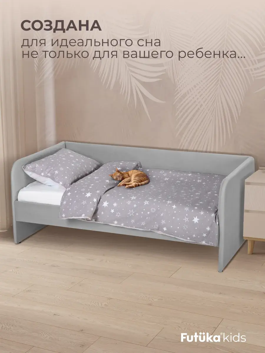 Мягкая кровать в современном стиле украсит интерьер любой детской комнаты, подходит как для мальчиков, так и для девочек.