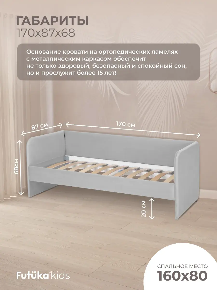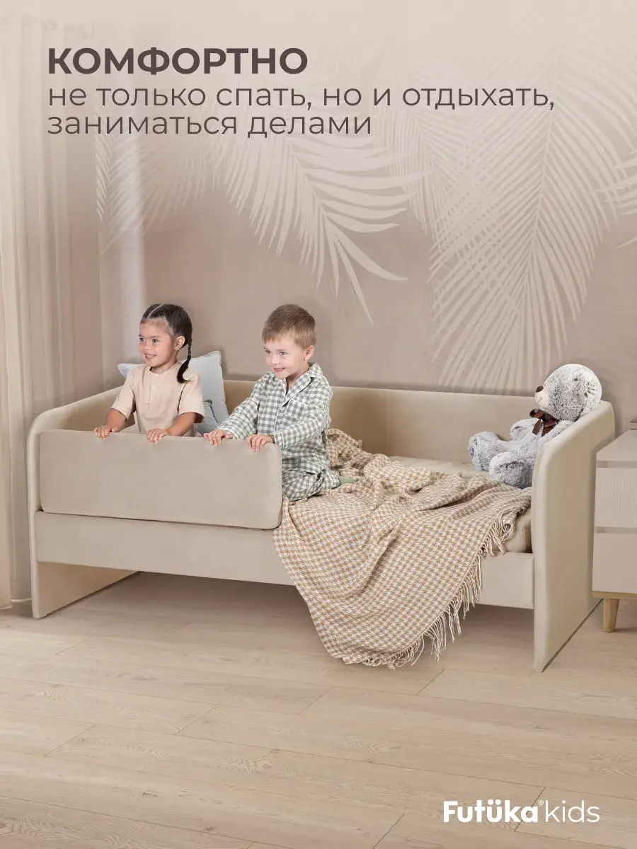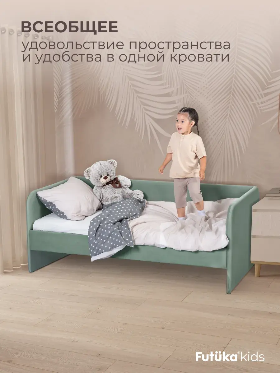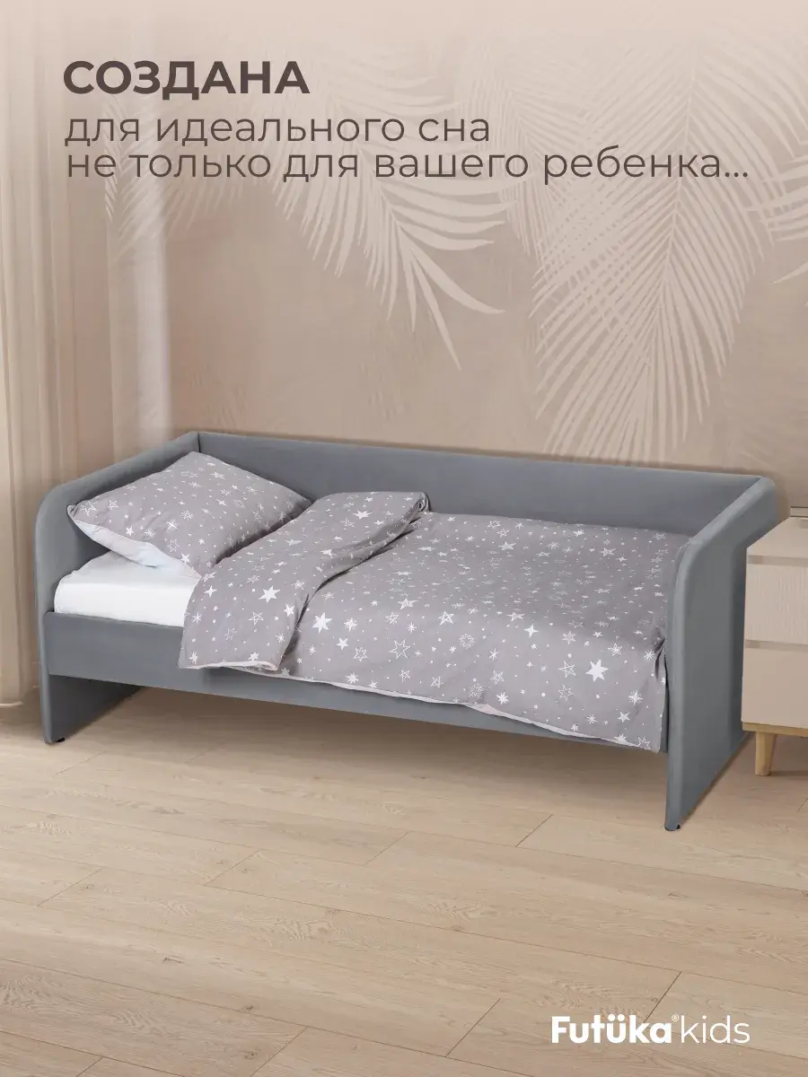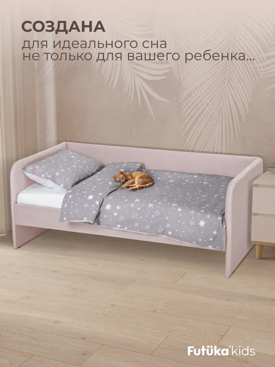 Мягкая кровать в современном стиле украсит интерьер любой детской комнаты, подходит как для мальчиков, так и для девочек.