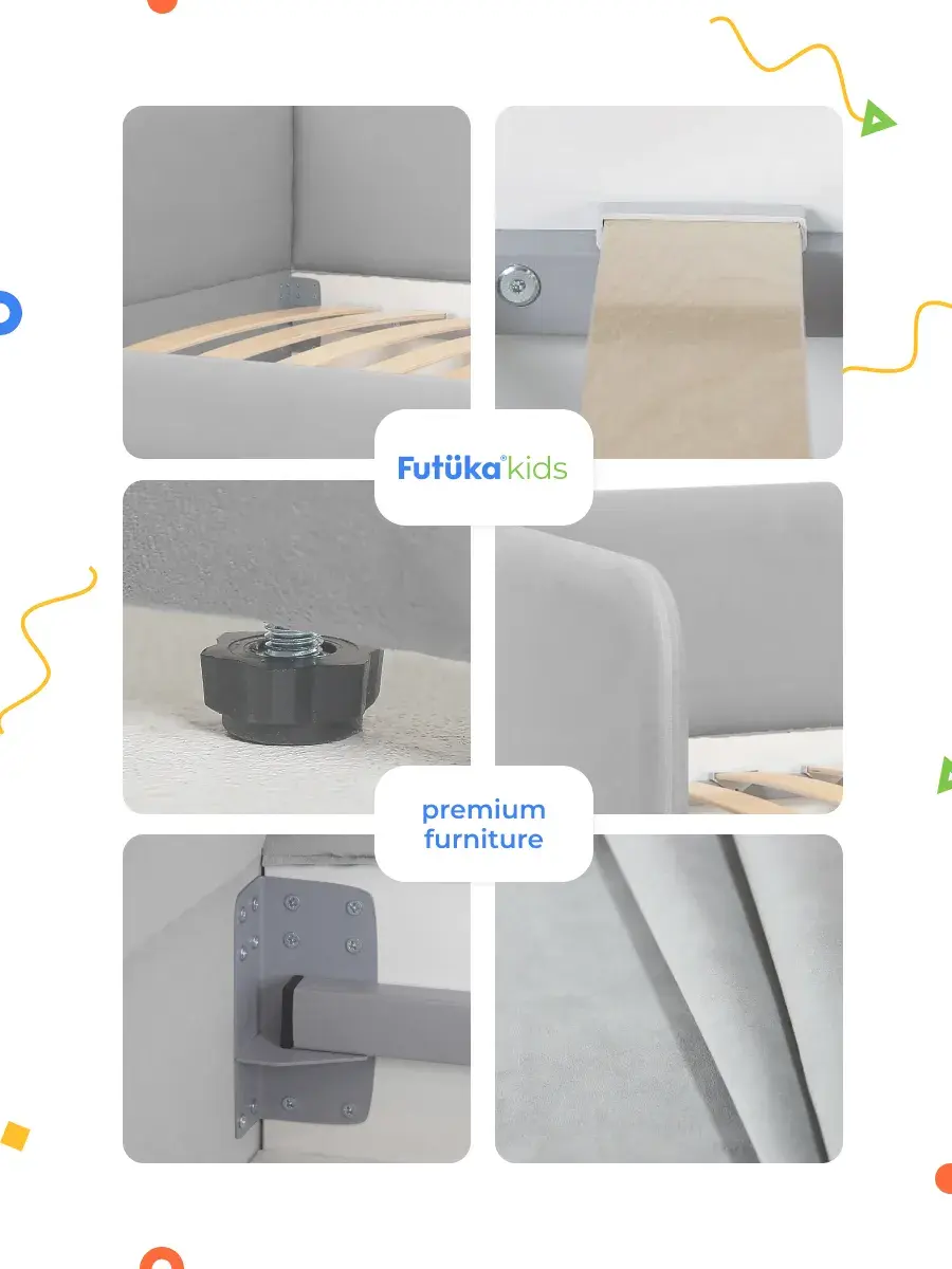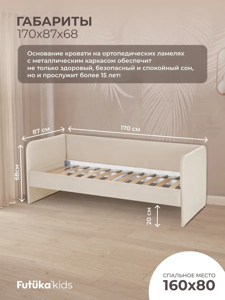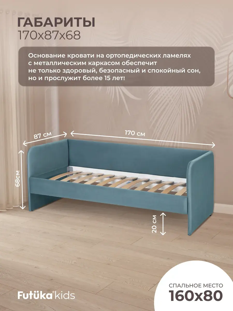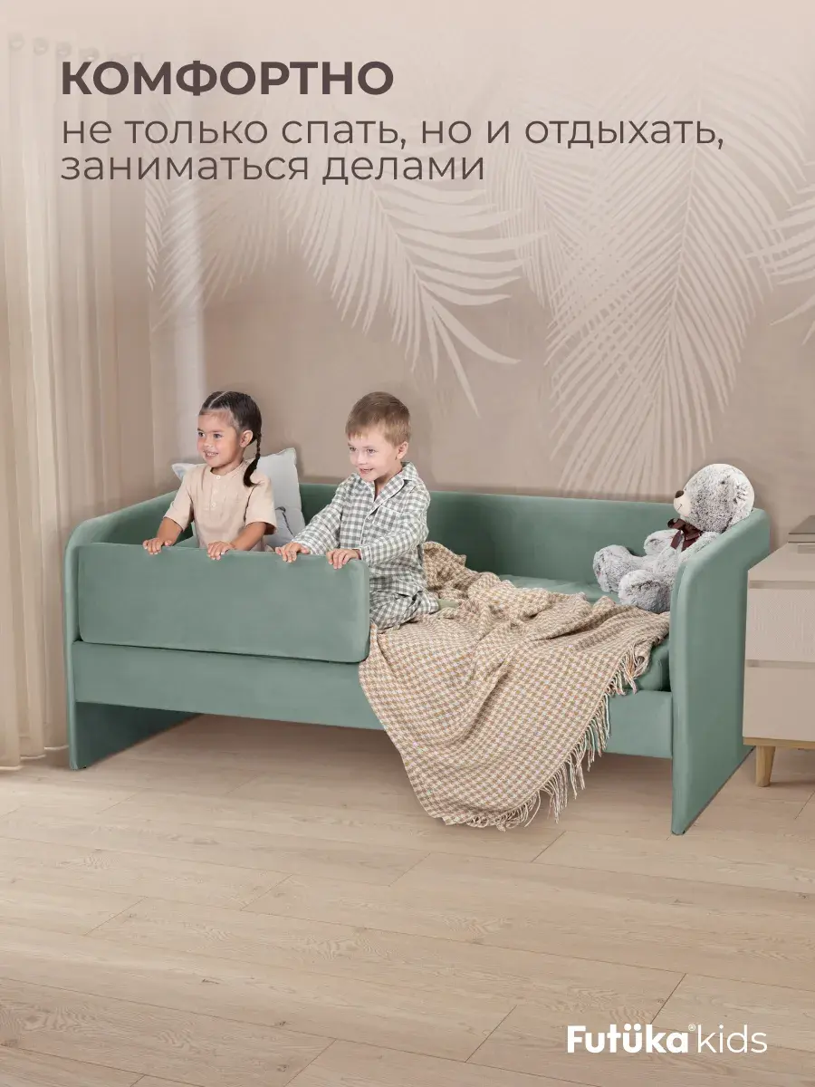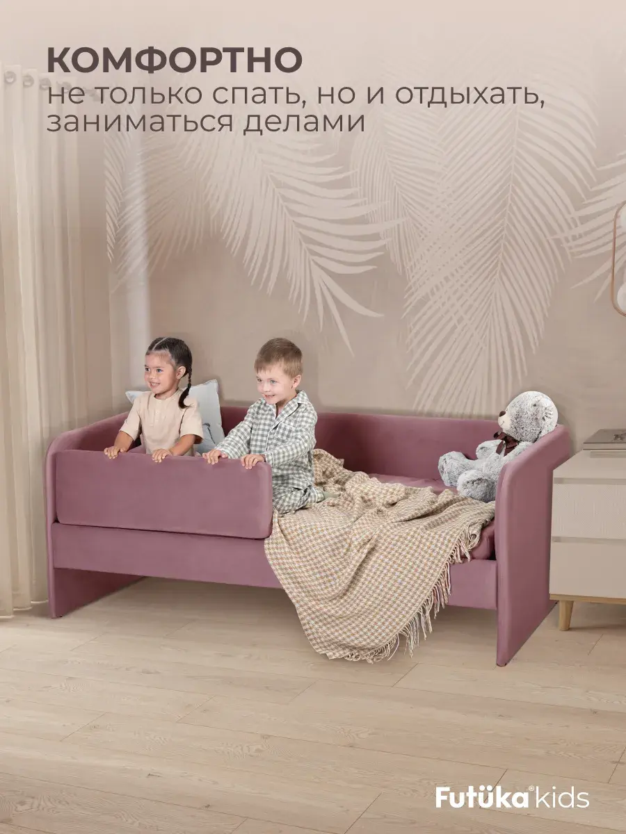 Мягкая кровать в современном стиле украсит интерьер любой детской комнаты, подходит как для мальчиков, так и для девочек.