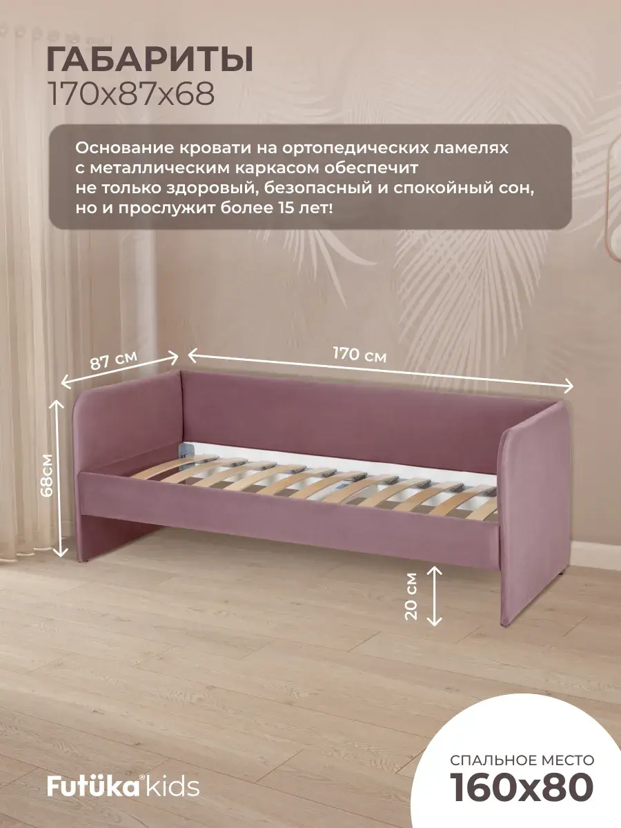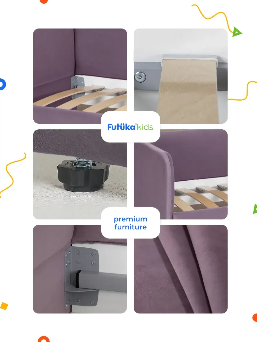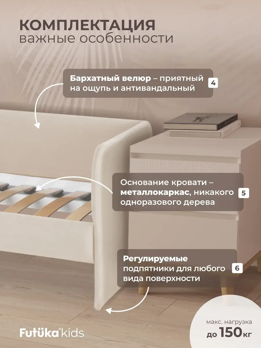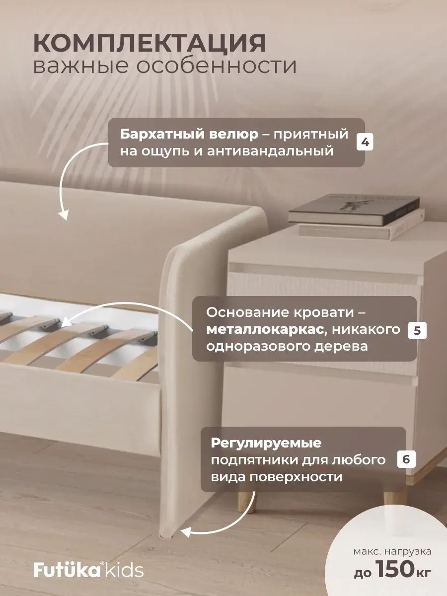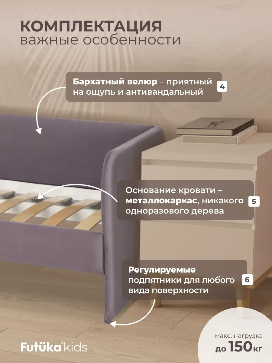 Кровать оснащена ортопедическим основанием из ламелей, которые крепятся на пластиковые держатели антискрип без использования саморезов. Это обеспечивает более надежную фиксацию и предотвращает скрип при использовании дивана-кровати и отличную вентиляцию матраса, позволяя ему дышать и сохранять свежесть на протяжении всего срока службы. Диван-кровать имеет металлический каркас. Преимущество такого каркаса заключается в его прочности и долговечности. Он обеспечивает стабильность и устойчивость мебели, даже при ежедневном использовании и высоких нагрузках. Это гарантирует сохранение формы и размеров на протяжении многих лет, что позволяет сэкономить на дополнительных вложениях в мебель. Еще одно бесспорное преимущество: возможность приобретения ящика для белья и игрушек. Ящик для белья можно с легкостью превратить в дополнительное спальное место. Для этого нужно только доукомплектовать ящик матрасом нужного размера. Каркас и дно ящика изготовлены из ЛДСП класса эмиссии Е-0,5. Это обеспечивает прочность конструкции.