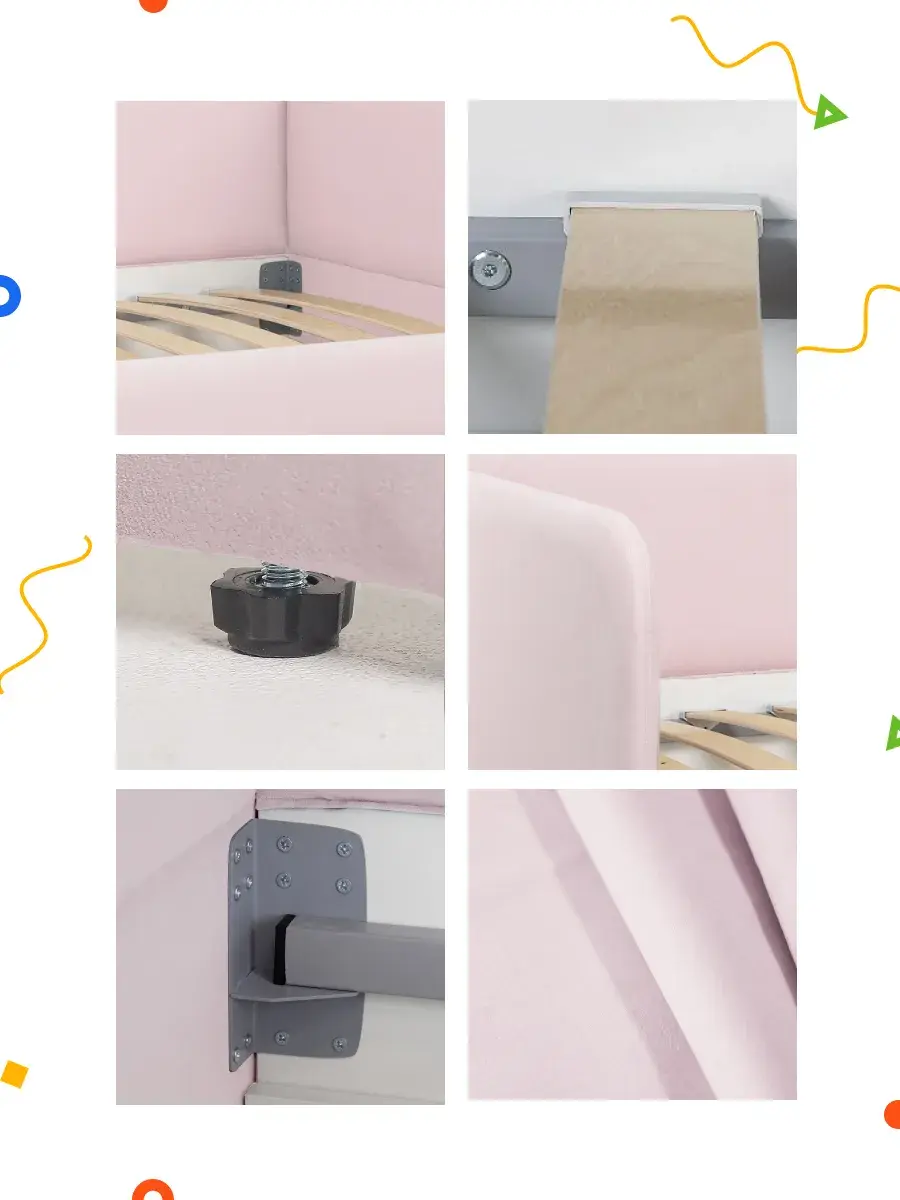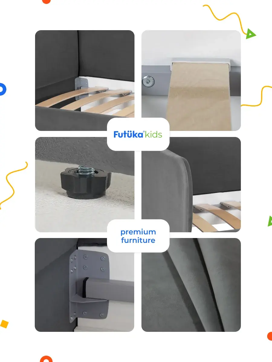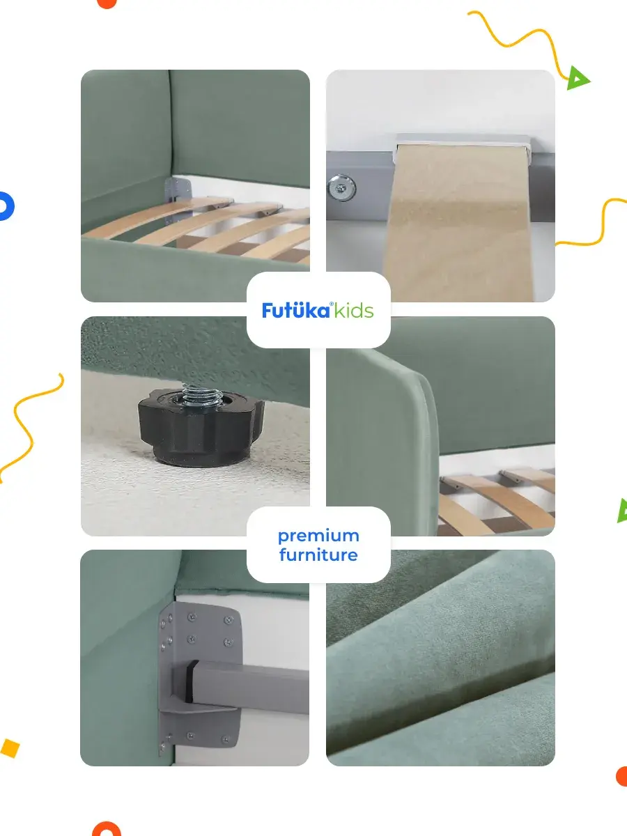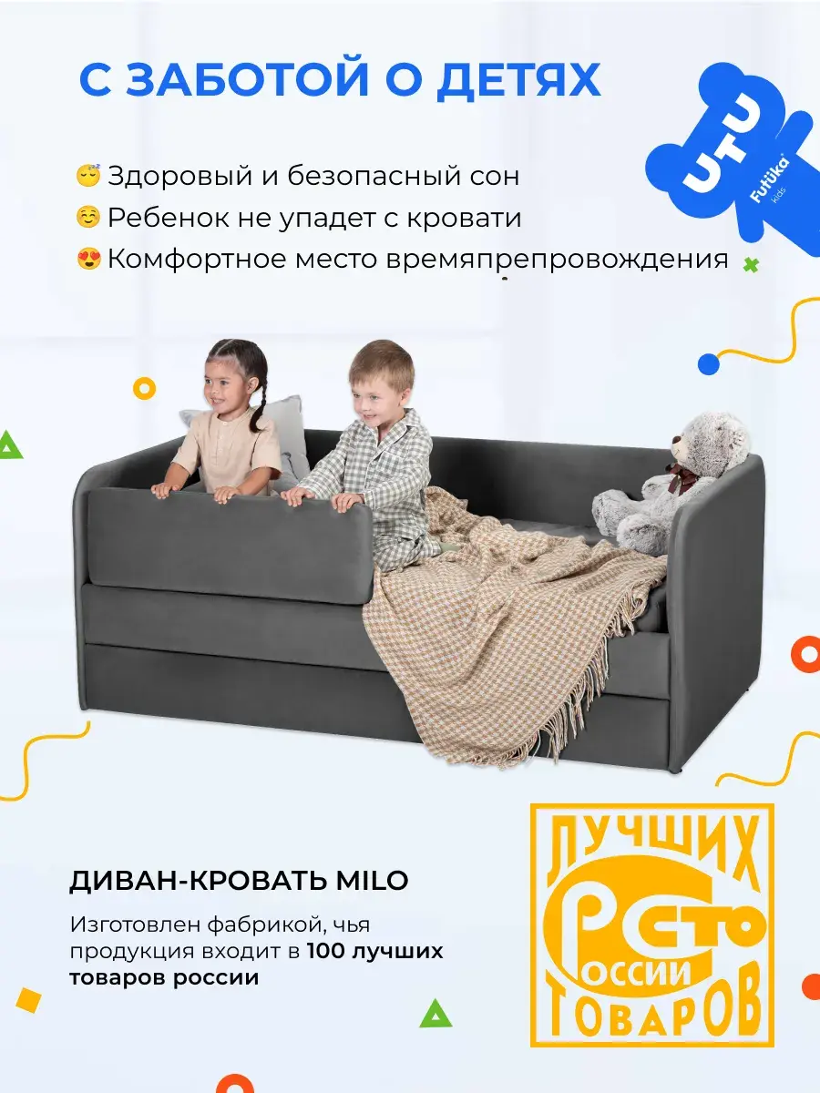 Кровать оснащена ортопедическим основанием из ламелей, которые крепятся на пластиковые держатели антискрип без использования саморезов. Это обеспечивает более надежную фиксацию и предотвращает скрип при использовании дивана-кровати и отличную вентиляцию матраса, позволяя ему дышать и сохранять свежесть на протяжении всего срока службы. Диван-кровать имеет металлический каркас. Преимущество такого каркаса заключается в его прочности и долговечности. Он обеспечивает стабильность и устойчивость мебели, даже при ежедневном использовании и высоких нагрузках. Это гарантирует сохранение формы и размеров на протяжении многих лет, что позволяет сэкономить на дополнительных вложениях в мебель. Еще одно бесспорное преимущество: возможность приобретения ящика для белья и игрушек. Ящик для белья можно с легкостью превратить в дополнительное спальное место. Для этого нужно только доукомплектовать ящик матрасом нужного размера. Каркас и дно ящика изготовлены из ЛДСП класса эмиссии Е-0,5. Это обеспечивает прочность конструкции.