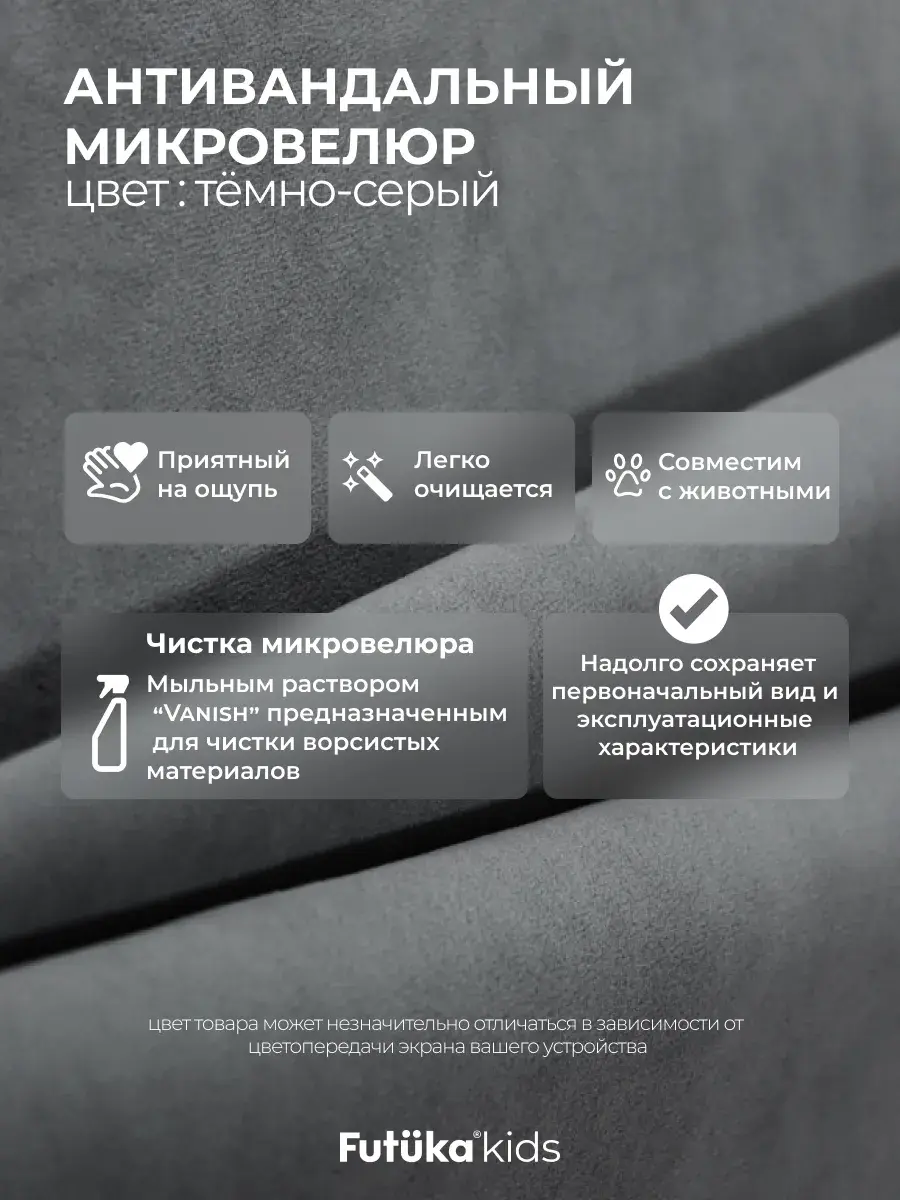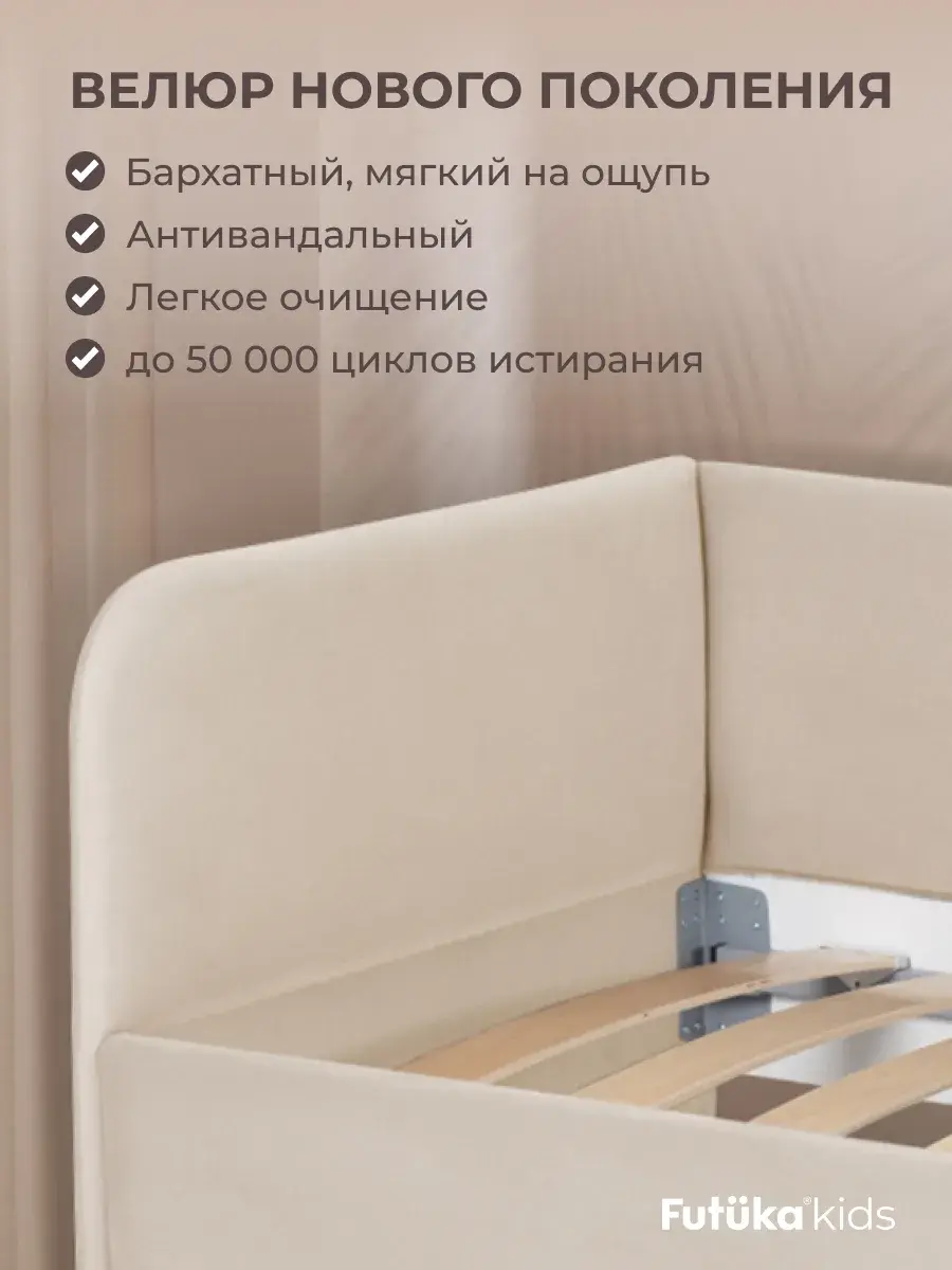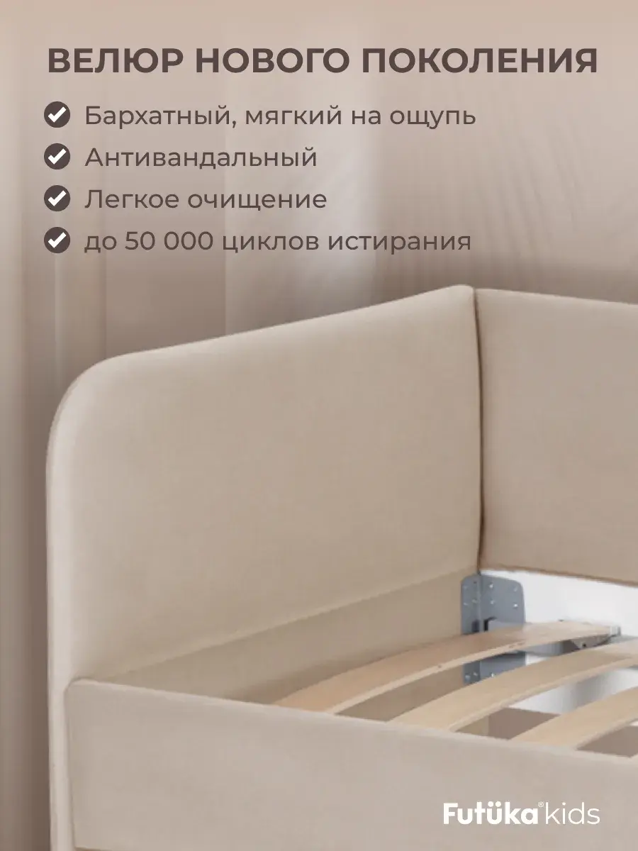 Мягкая обивка создает атмосферу уюта. При создании новинки мы использовали ткань велюр последнего поколения, отличающуюся такими свойствами как: ультра мягкость; повышенная износостойкость, за счет инновационных методов производства; легкая чистка.