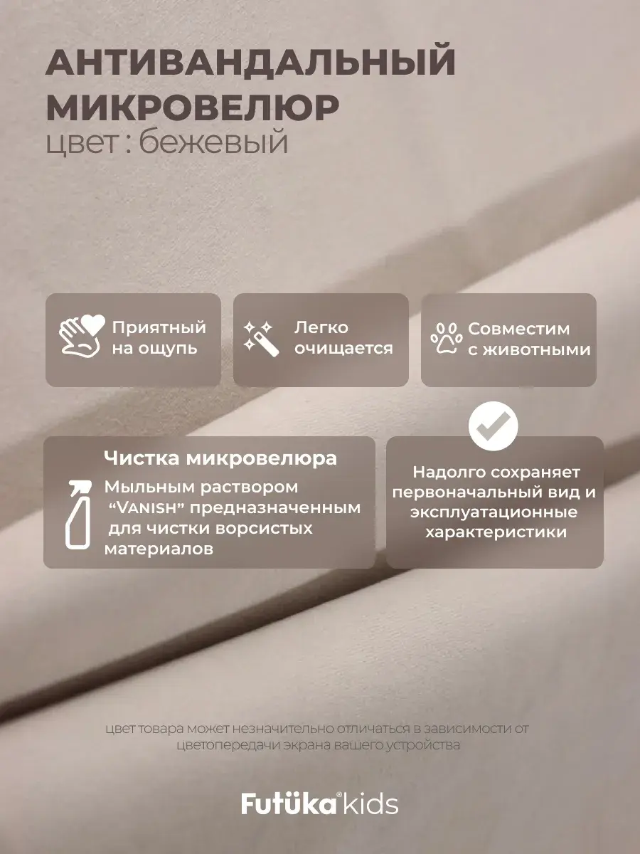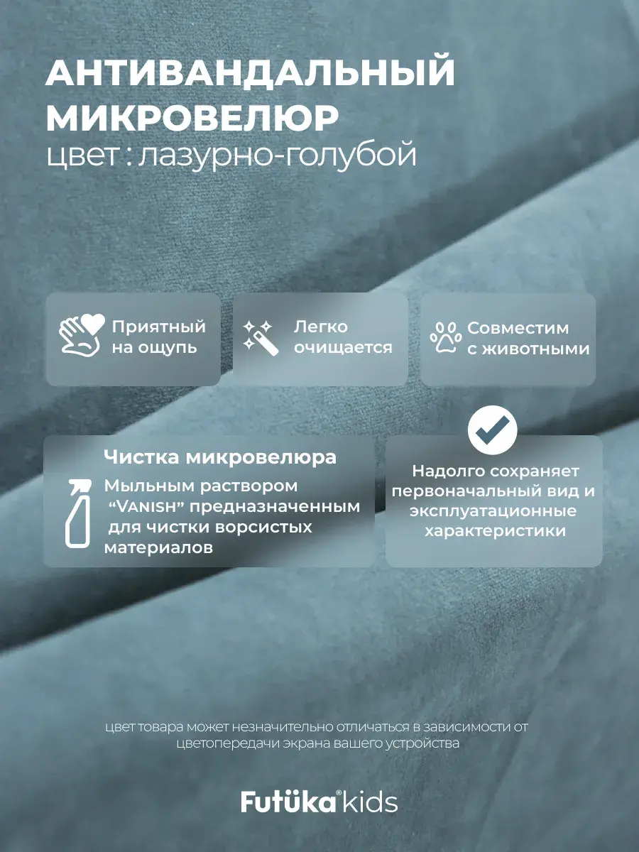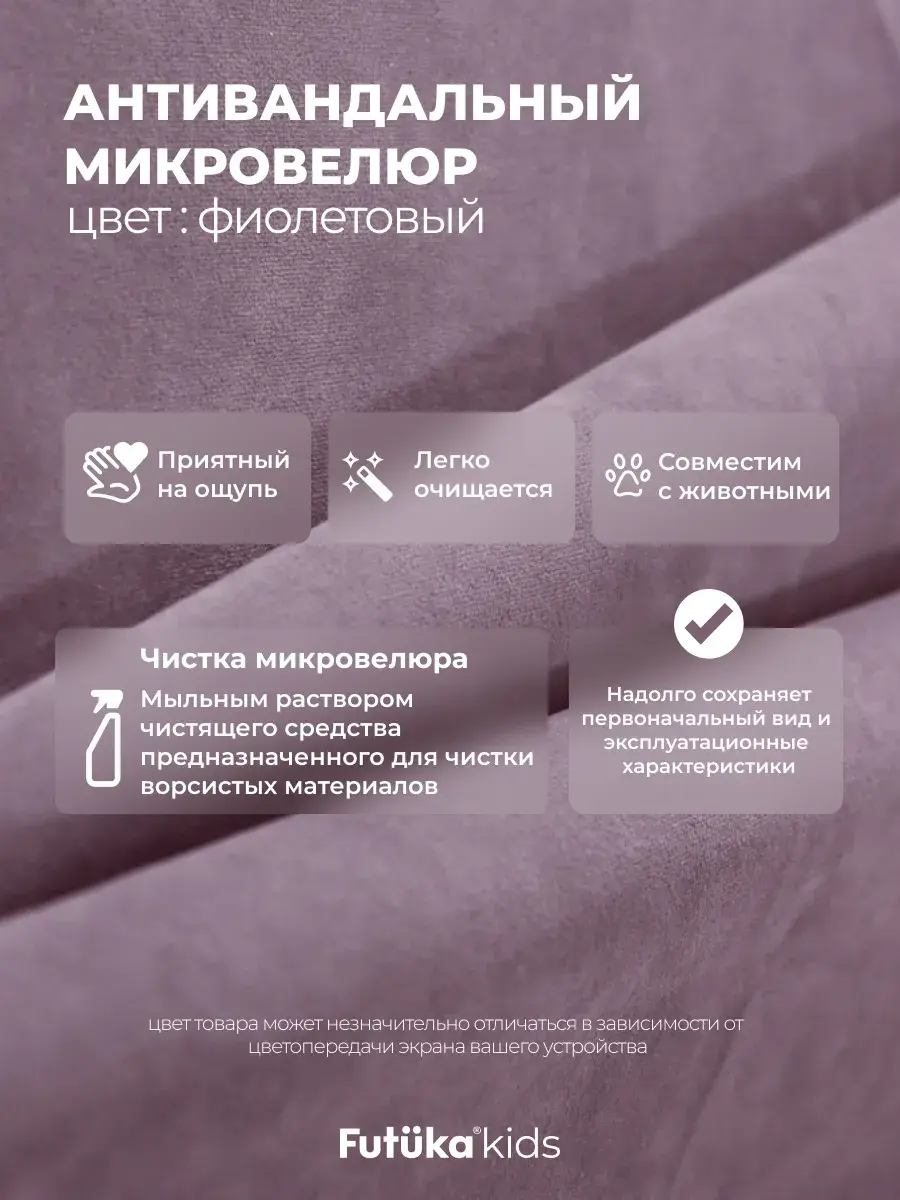 Мягкая обивка создает атмосферу уюта. При создании новинки мы использовали ткань велюр последнего поколения, отличающуюся такими свойствами как: ультра мягкость; повышенная износостойкость, за счет инновационных методов производства; легкая чистка.