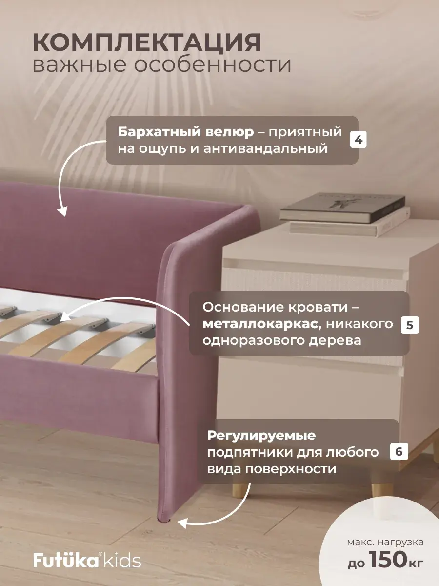 Опционально доступны чехол на матрас в тон кровати и матрас. Рекомендуемая высота матраса до 15 см. Ниже представлены соответствие цветов диван-кроватей по палитрам RAL и Pantone, чтобы вы могли наглядно увидеть как цвет будет смотреться в вашем интерьере: Микровелюр 01 (кремовый) RAL:080 80 05 | Pantone:13-5304 TPX Микровелюр 013 (бледно-розовый)...