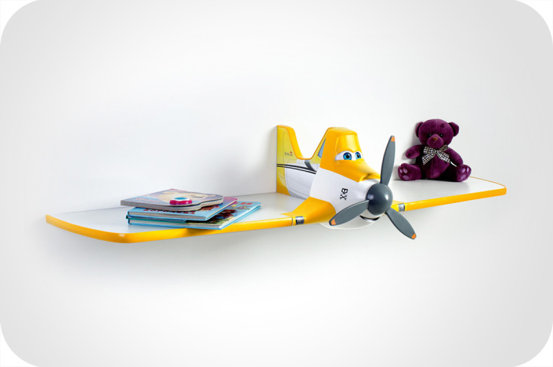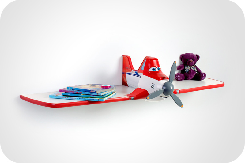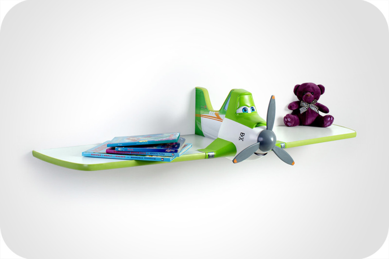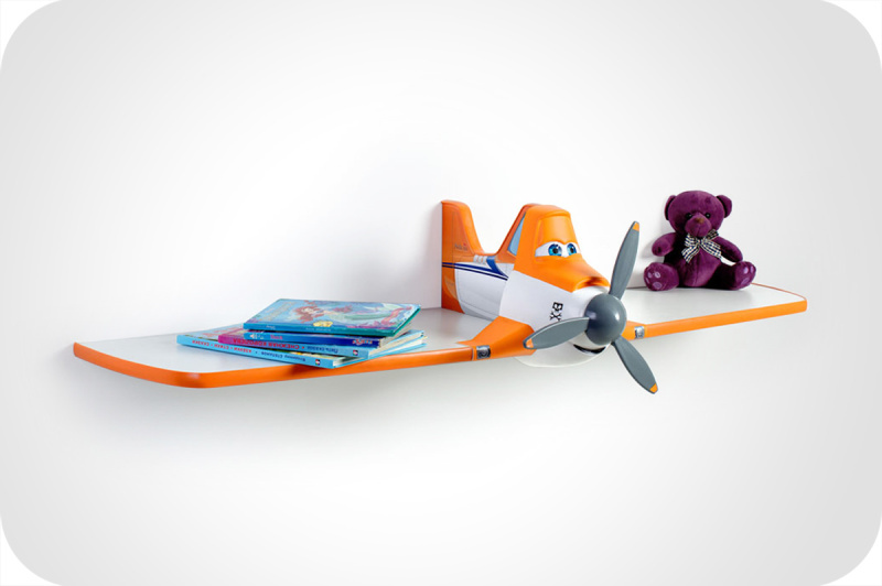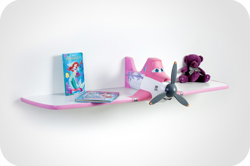 Полочка в виде самолетика Дасти - отличный вариант для детской комнаты. Она выполнена в виде крыльев самолета, посередине крыла расположен пластиковый объемный корпус самолета с вращающимся пропеллером. Натуральность Самолетику придается цветными наклейками, имитирующими детали самолета. Полка гармонично впишется в любую детскую комнату, придавая неповторимый штрих интерьеру.